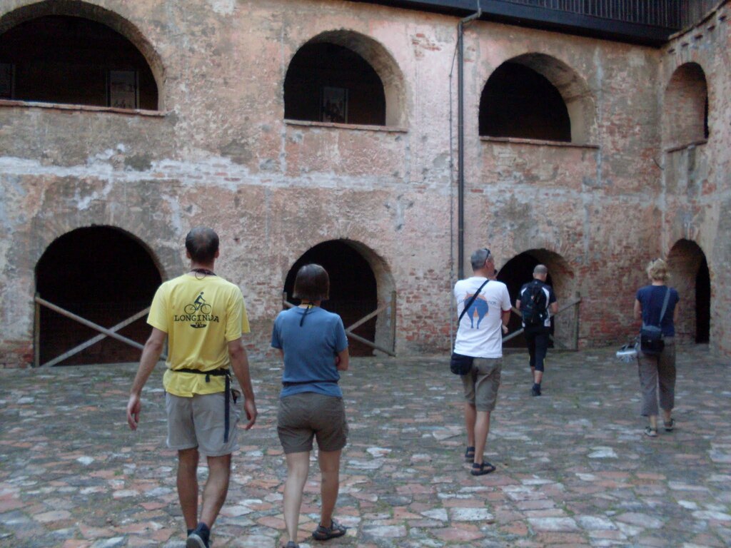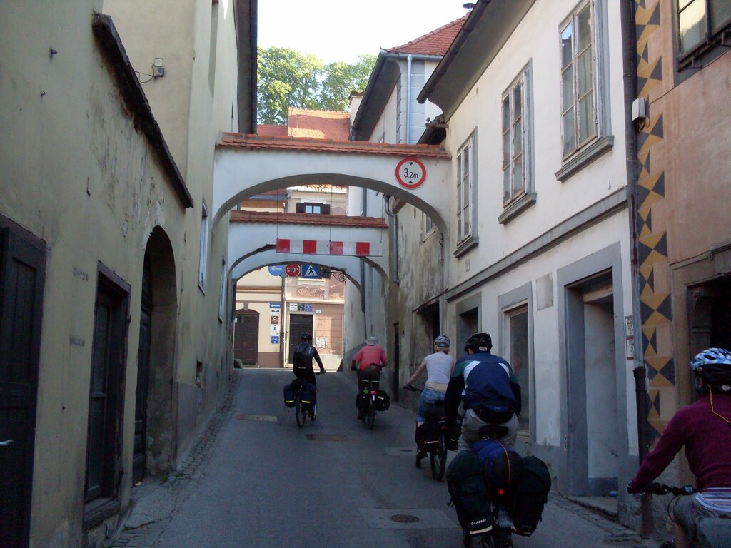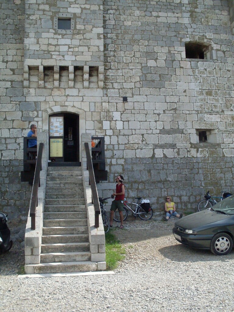 Zwiedzamy zamek Sisak (stara twierdza nad rzeką, o dość niepraktycznym, trójkątnym kształcie – mało wojska mogło się w środku schronić), oprowadzani przez świetną, anglojęzyczną przewodniczkę, w zamku dwa śluby (nawet przeprowadzaliśmy rowery przez środek namiotu-restauracji) i w ogólnie całkiem przyjemna przerwa w jeździe rowerem.