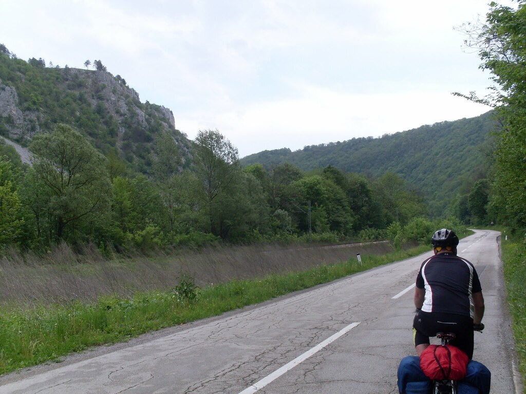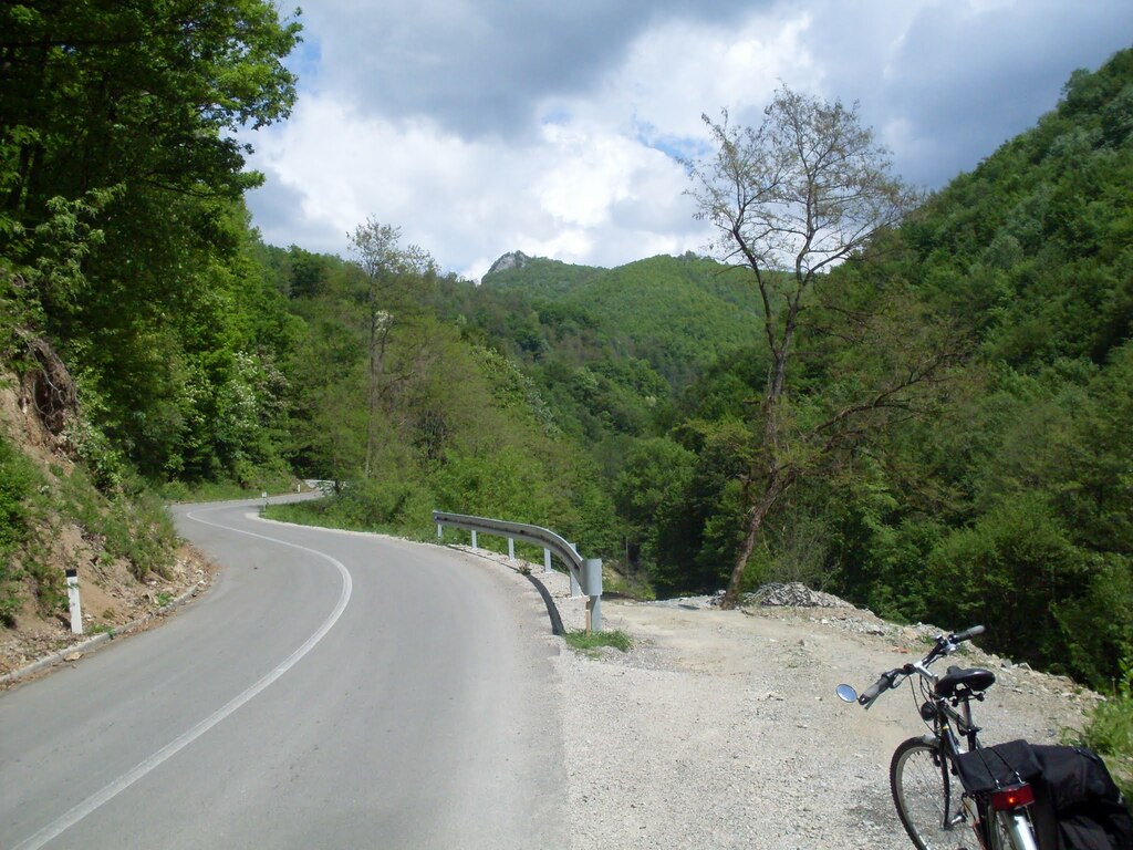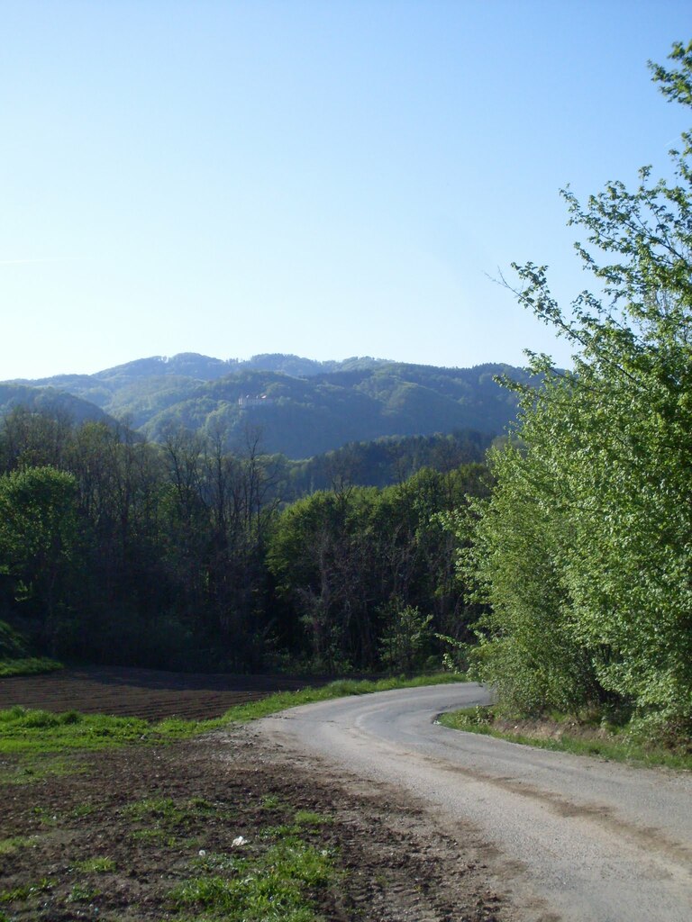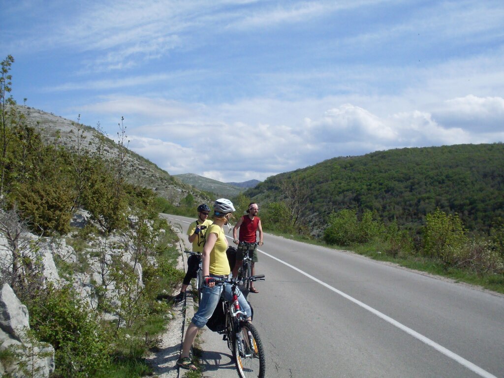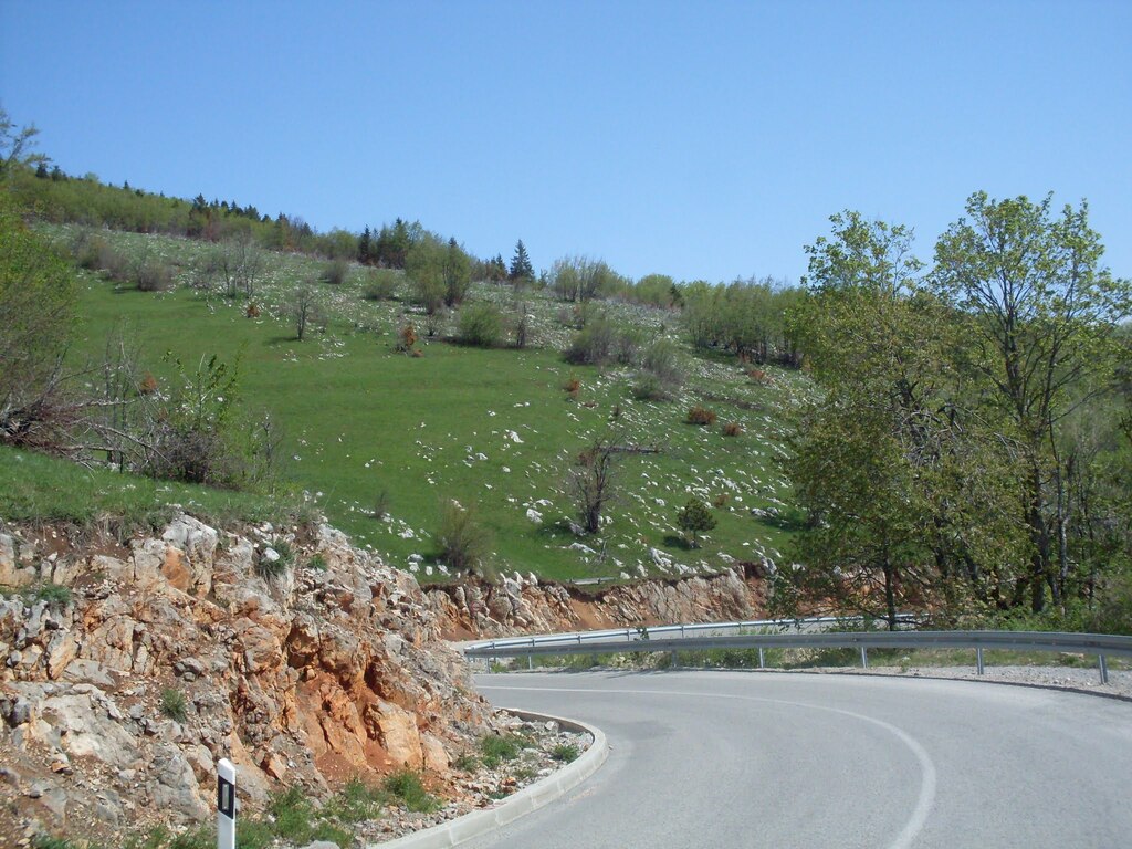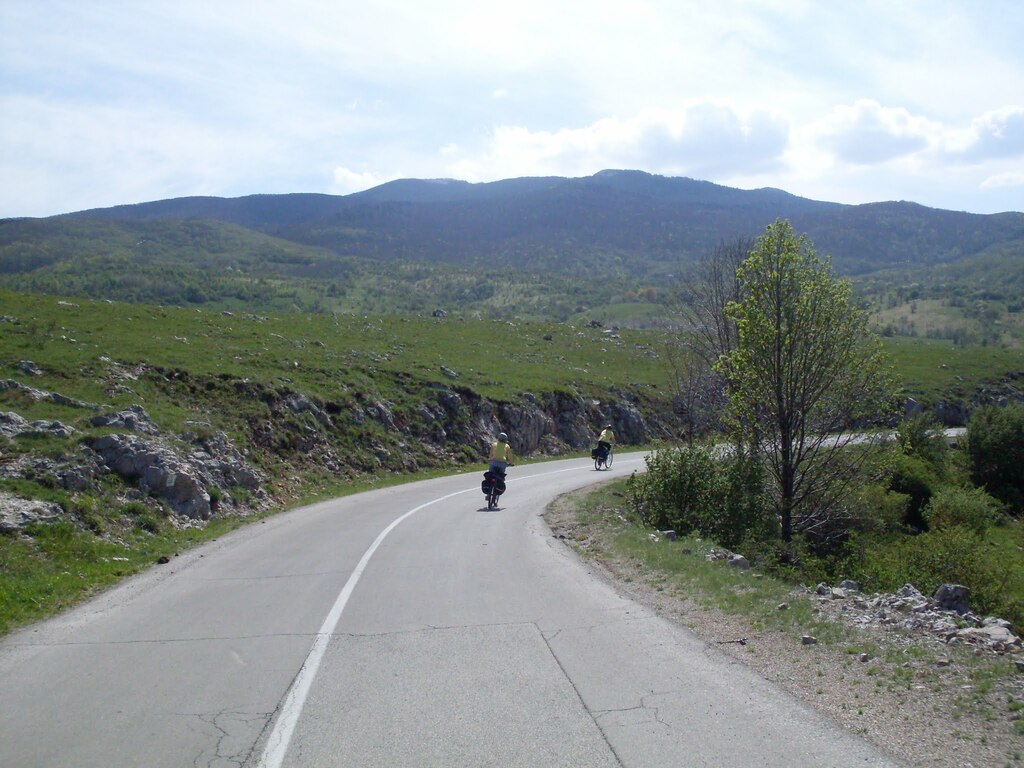 Trochę przykrego błądzenia w pełnym słońcu przez miasto Karlovac, potem ruchliwa droga wyjazdowa z miasta (z podjazdem) i w końcu zjazd na piękną boczną drogę przez wzgórza. W Ogulinie szybki obiad kanapkowy i jedziemy w nieco mniejszej grupie solidny podjazd – teoretycznie trudniejszy niż poranne, ale gdy słońce już tak nie pali (nawet przez chwilę pokapało), to zupełnie inna jazda.