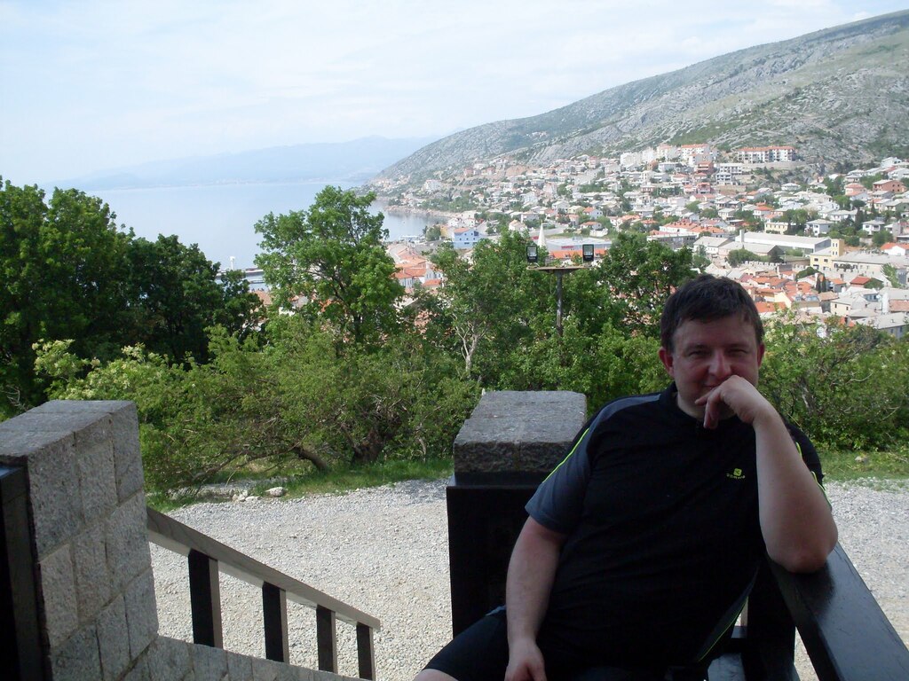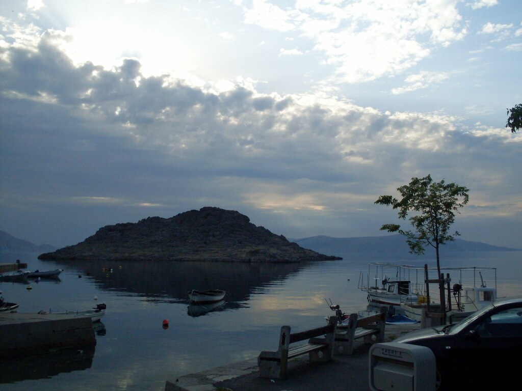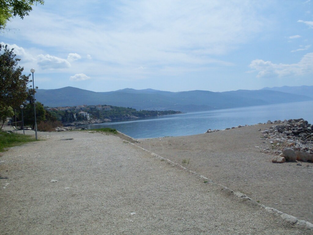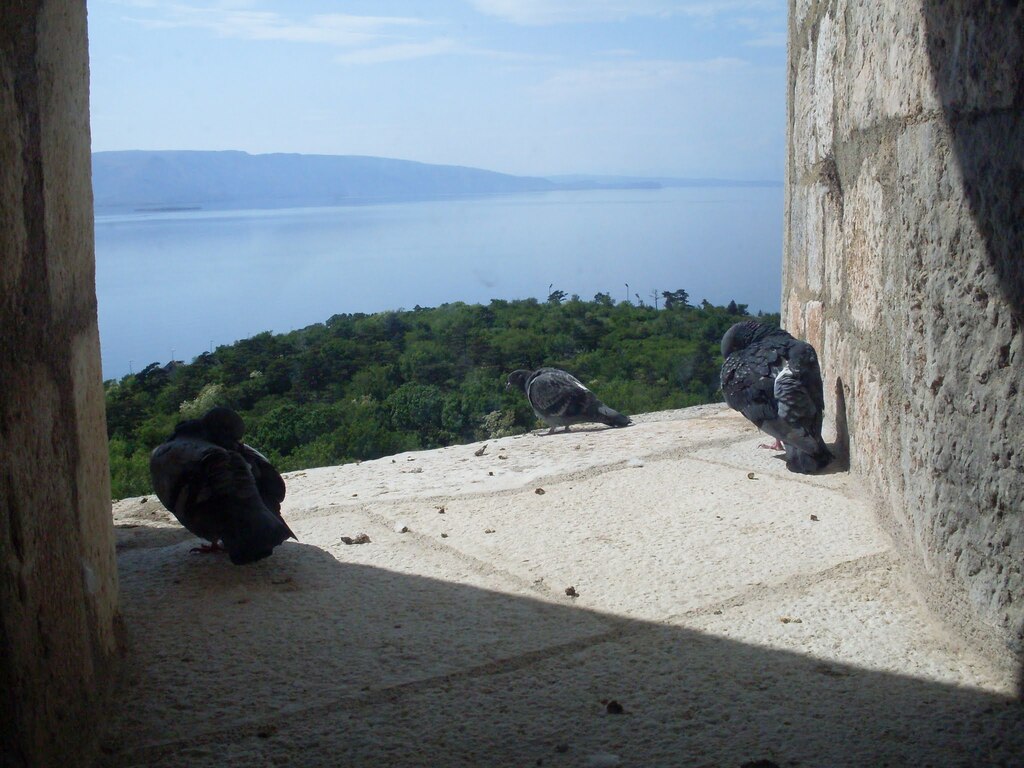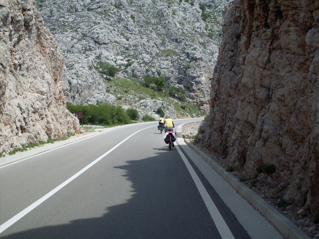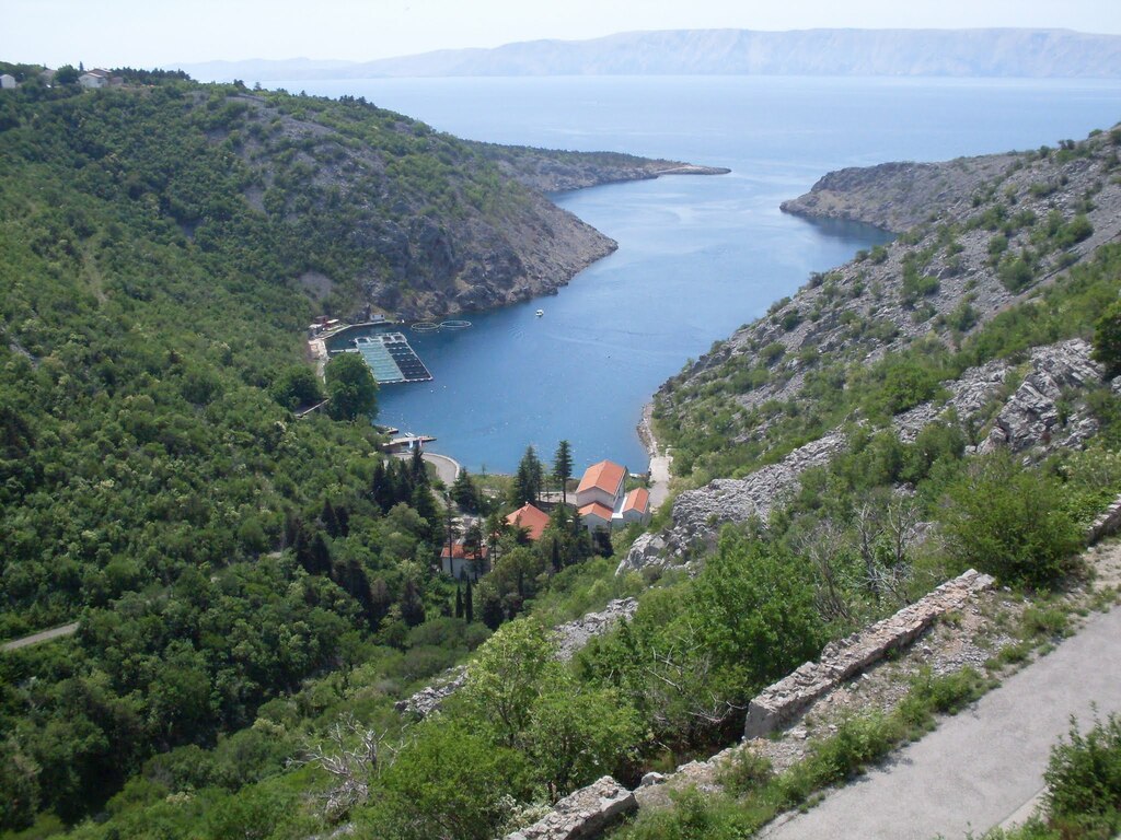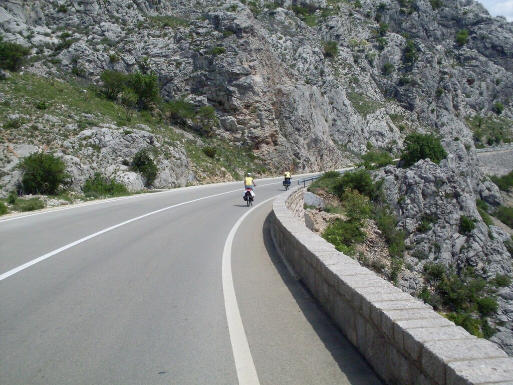 a potem dalej nad morzem – do Sveti Juraj. Choć ciągle patelnia, to droga nieźle się kręci – ładnie tu nad morzem, choć przepaści tuż koło drogi, bez barierek, robią wrażenie. A Sv.Juraj pustki – to małe portowe miasteczko z otwartym jednym sklepem i knajpą portową. Żegnamy się z morzem – już bez kąpieli bo wieczór bez słońca – i w górę.