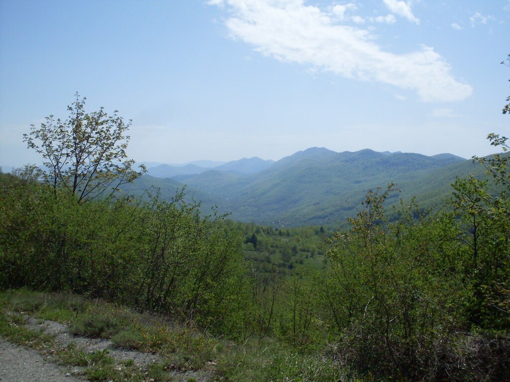 Ale najpierw zjazd – mamy 1060m do zjechania: najpierw przez las, potem dziwne, suche wzgórza, po których wije się droga, ciągłym zjazdem sprowadzając nad morze.