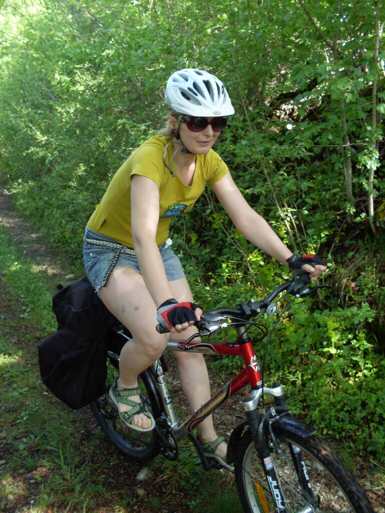Rano przejazd ścieżką przez las. Ja zupełnie nienawykły do jazdy terenowej, zwłaszcza z sakwami, obawiam się o rower – i jak się okazało słusznie: gubię śrubę od bagażnika. Ale zauważam to szybko, wkręcam nową – obywa się bez negatywnych konsekwencji (nie urywam drugiego mocowania, jak to kiedyś mi się zdarzyło).