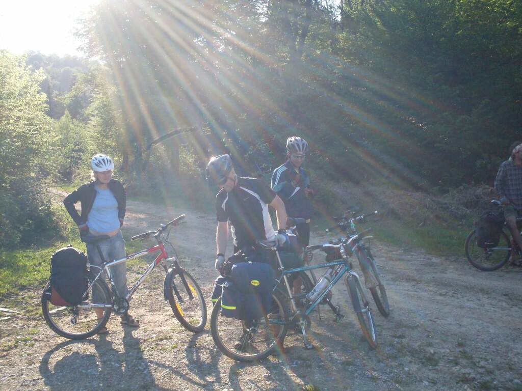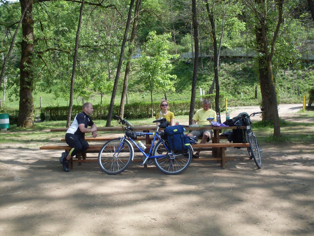 Dziś dwa razy przekraczamy granicę dzięki czemu jedziemy ładnymi okolicami po Słoweńskiej stronie, część grupy odbija na termy, a reszta kąpie się w rzece – przyda się, bo dziś nocleg znowu bez wody: na łączce koło kanału Kupa-Kupa. Ci bardziej doświadczeni zachwalają zalety wilgotnych chusteczek. Dziś śpię w namiocie, jest mi ciasno i podobno chrapię.