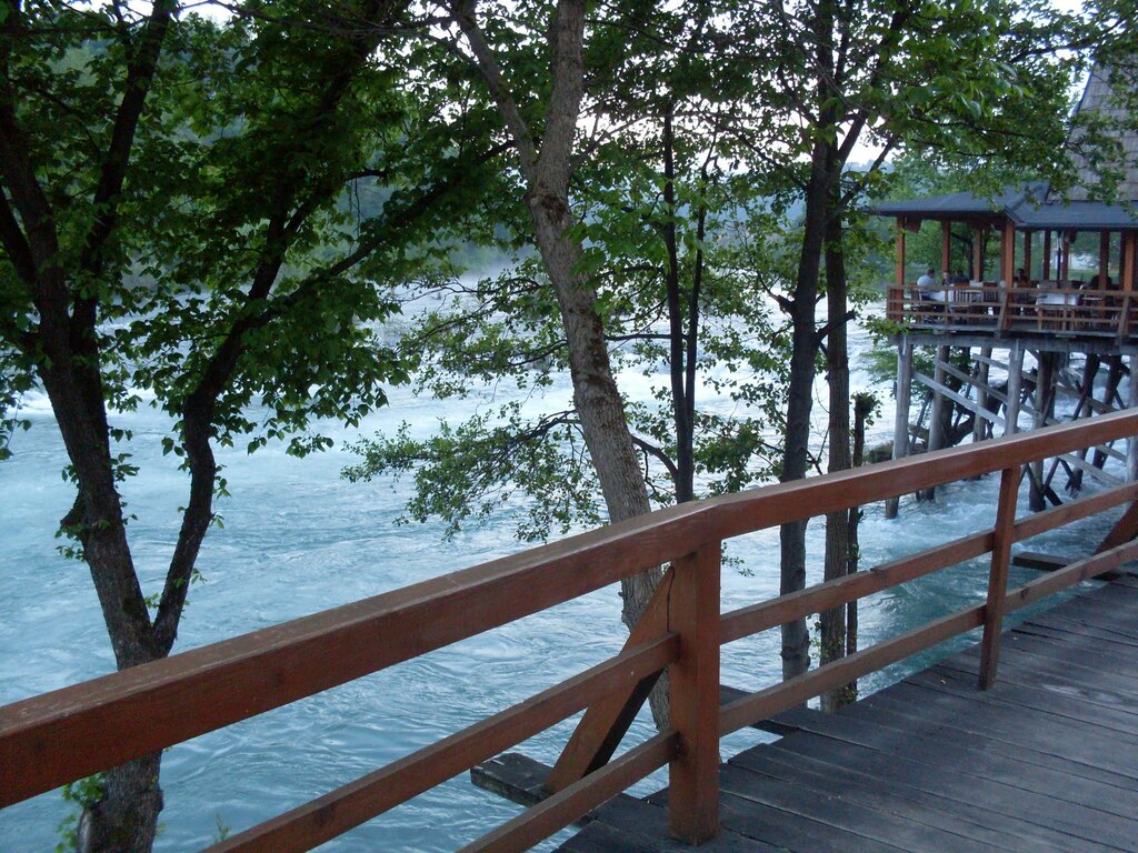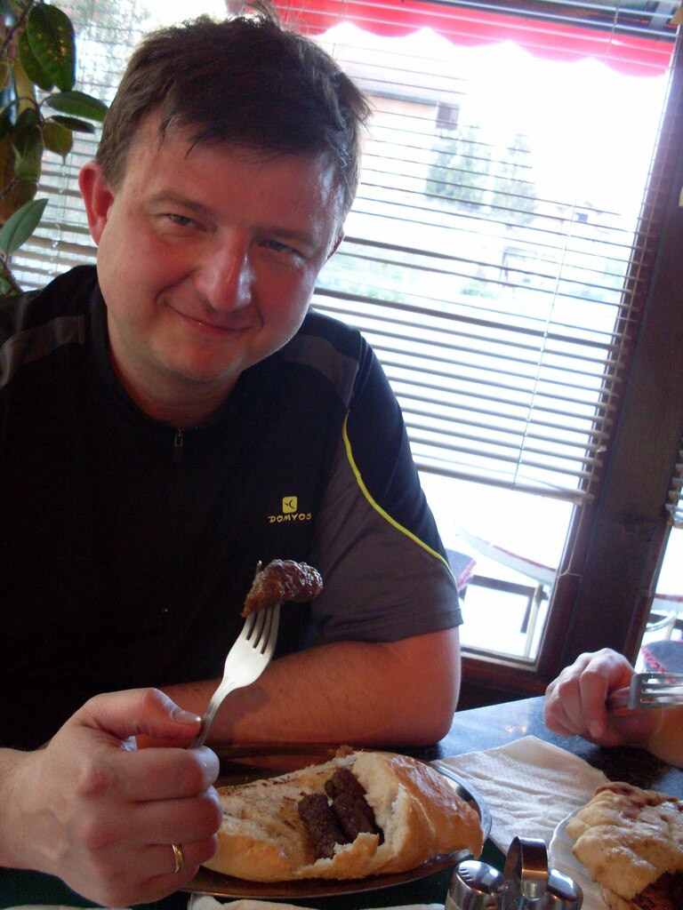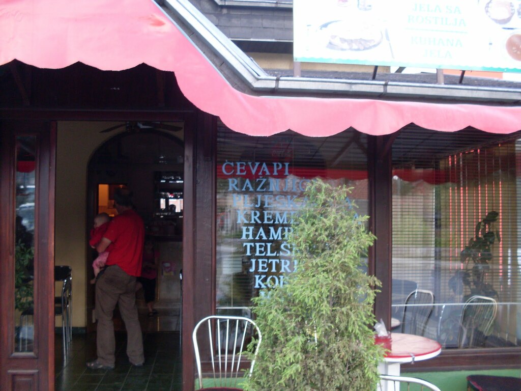 Zjeżdżamy do Bośniackiej Krupy o 17, czyli godzinę po umówionym czasie spotkania – coż, marudziliśmy nieco po drodze. Ale wcale nie spóźniliśmy się – Longin dziś z dziećmi zwiedzał Jeziora (potem opowiadali nam o tłumach) i też mu zeszło. W Krupie obiad w knajpce przy „dworcu” autobusowym – buła zasmażana w tłuszczu z kiełbasko-kotletami baranimi. I zielona herbata.