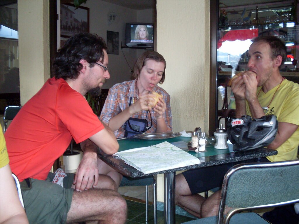 A potem znowu dużo podjazdów i zjazdów. W pełnym słońcu, przez chwilę jedziemy na skraju deszczu. I smaczny, ciekawy obiad: makaron gotowany w małej ilości wody (bez odcedzania), z dolanym pod koniec sosem pomidorowym i ajwarem.