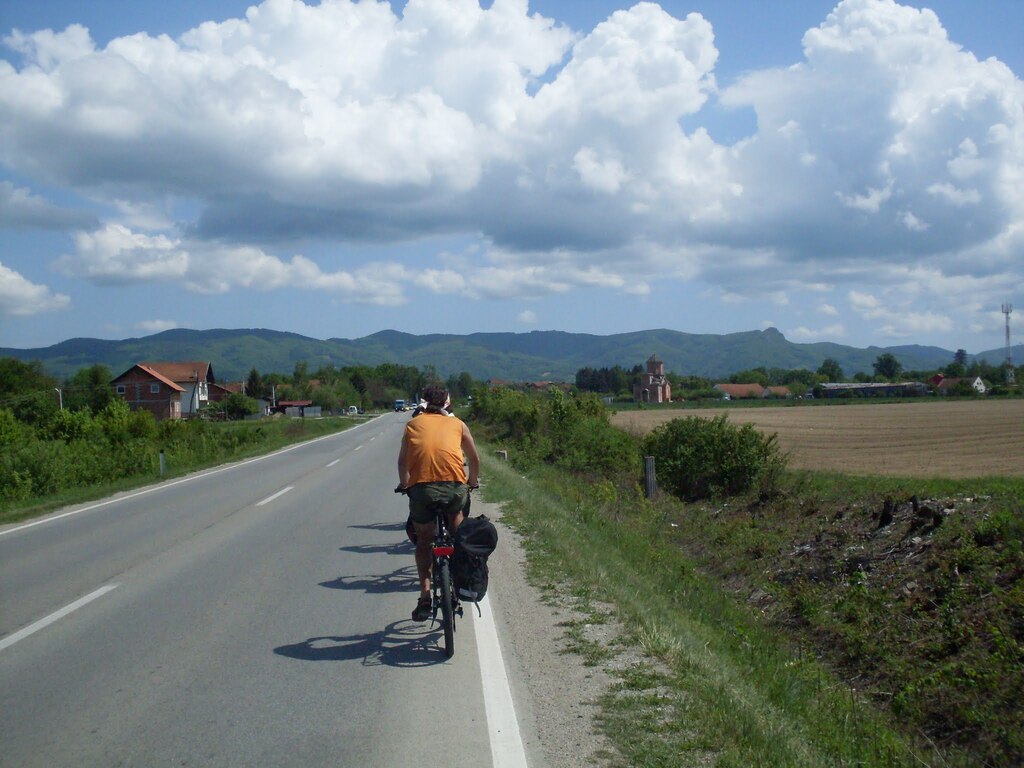 A potem długie 65km wioskami do Sisaka. Droga płaska, przy rzece (Sawa – nie do kąpieli), ale nawierzchnia raczej kiepska i przede wszystkim gorący wiatr w twarz. Męczące. Po obiedzie („kociołek” – gotowe danie ze słoika z Polski, za pierwszym razem wydawało się OK) wstępują nowe siły, a jazda jeden za drugim (z Robertem na przedzie – pochylonym na lemondce, ale i tak dającym mnóstwo osłony od wiatru) nawet szła.