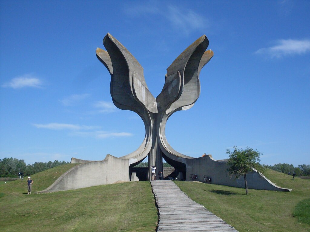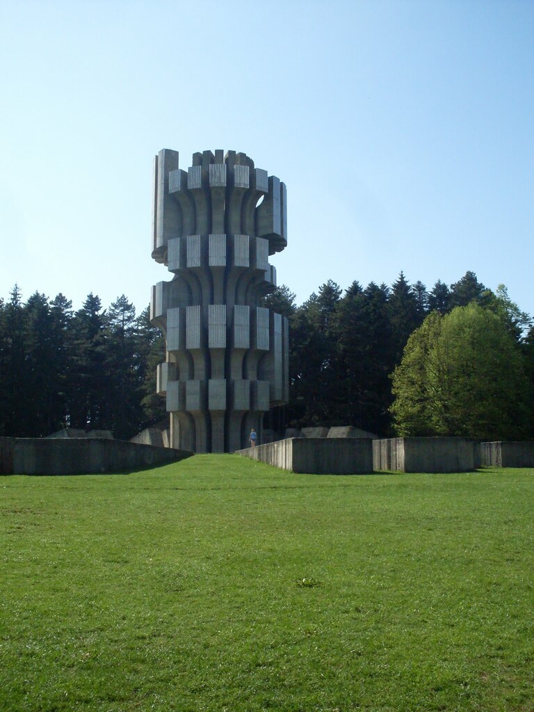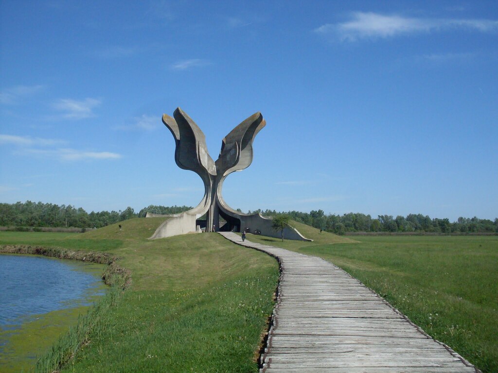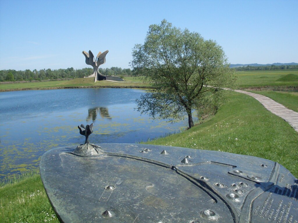 Niesamowite miejsce po obozie koncentracyjnym urządzonym przez Chorwatów w trakcie II Wojny Światowej: Serbom, Cyganom, Żydom i jeszcze innym – w sumie 80 tys ludzi zabili. Rozległa łąka z wielkim betonowym „kwiatem”, pociągiem i muzeum, gdzie w ciemnościach kontrastujących ze słońcem na zewnątrz, eksponaty opowiadają o tym co się tu zdarzyło. W szczególności o tym, jak zagonili Serbów z góry Kozyra (gdzie byliśmy wczoraj).