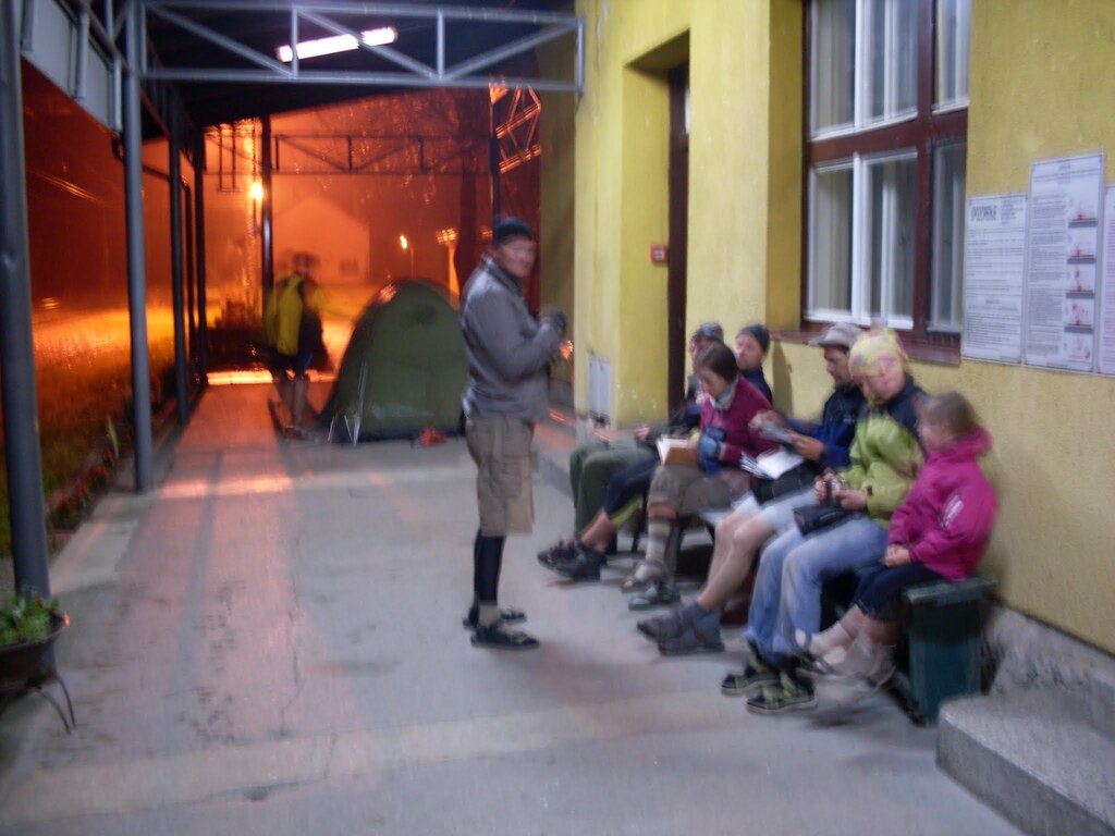Potem wieczorny przejazd do granicy (wracamy do Chorwacji) i w nocy, na stacji kolejowej Hrvatska Dubica, czekamy na busa, który czeka na grupę Heńka, który „skrócił drogę”. Zaczyna lać okrutnie – może i plany były inne, ale stacja w deszczu ma swoje zalety: jak trochę deszcz odpuszcza, to rozstawiamy namioty na trawniku koło stacji.