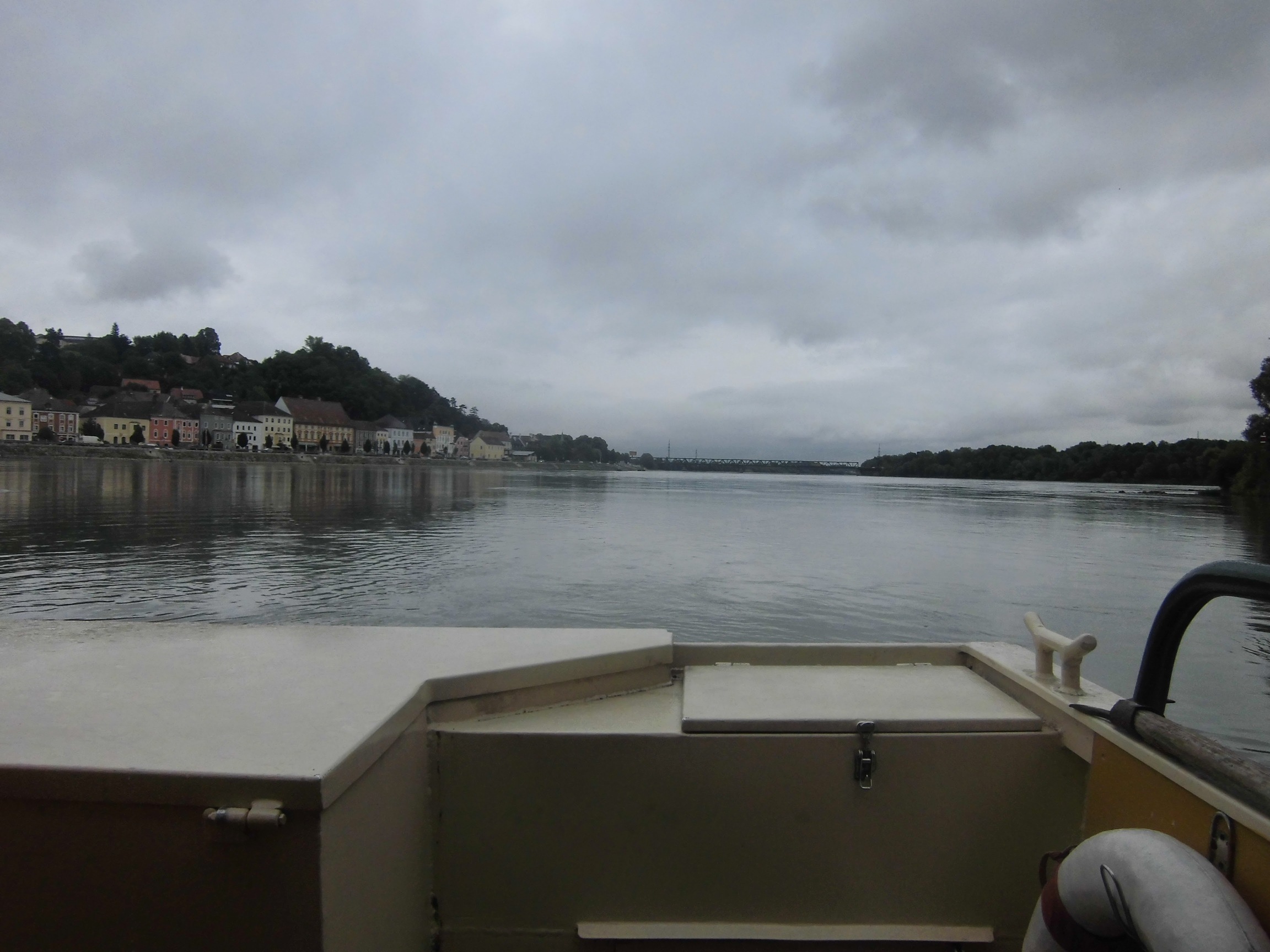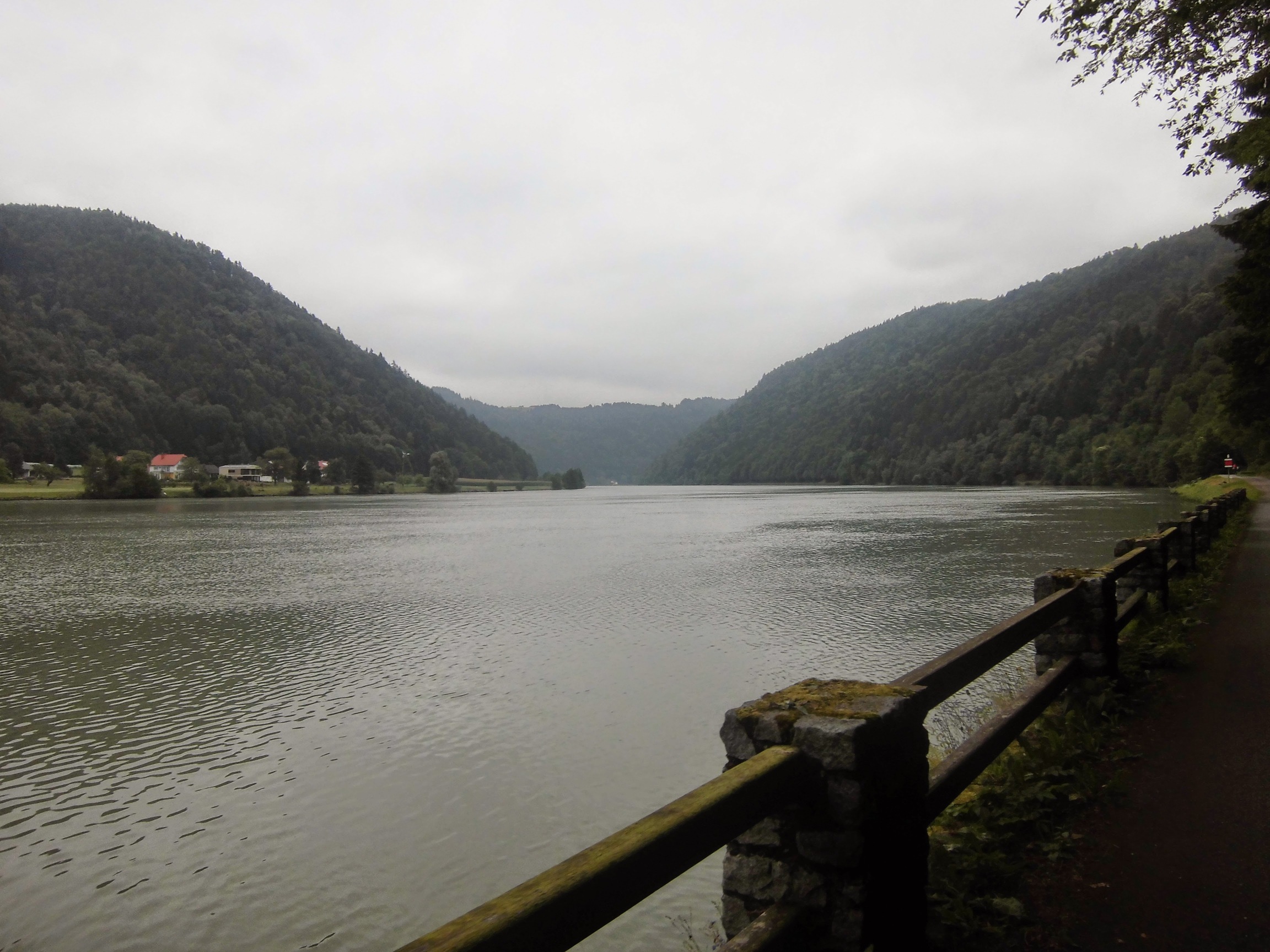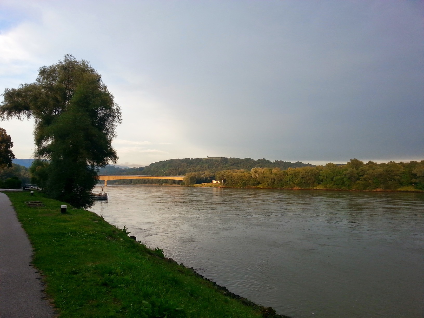 Ale nie jest źle – raptem 10km dalej pomału przestaje padać. Potem okresowo deszcz trochę wraca, ale tylko trochę – można jechać. Enns omijamy (znamy go z poprzedniego wyjazdu), a potem przepływamy Dunaj promem, po czym w miasteczkowym McDonaldzie korzystam z wifi i sprawdzam prognozę – ma padać dziś i jutro po południu.
