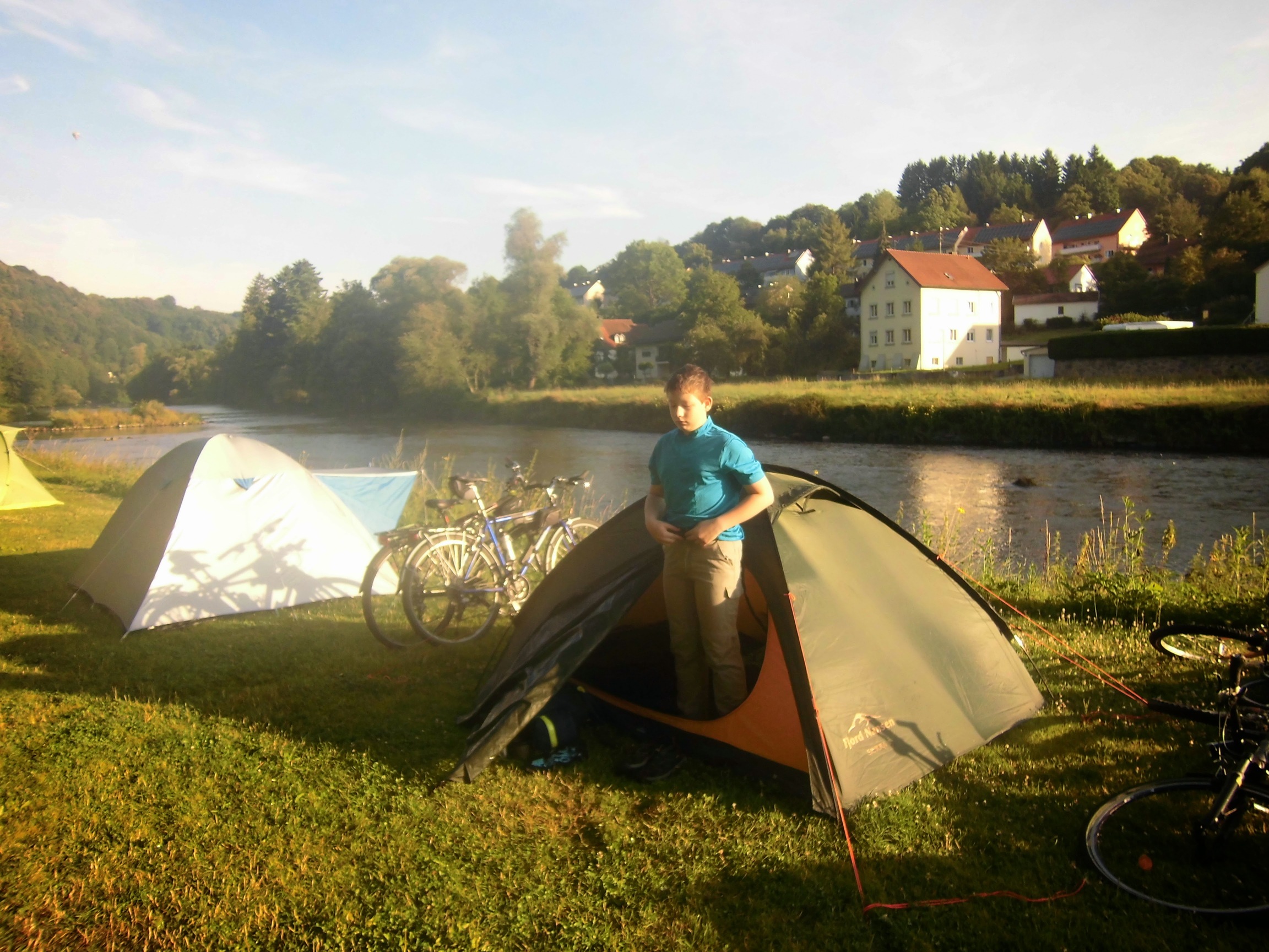 W 5 godzin pociągami przejeżdżamy wzdłuż całą Austrię i wjeżdżamy do Niemiec – jesteśmy w Pasawie. Jesteśmy w punkcie startu naszej drogi wzdłuż Dunaju! Znajdujemy camping nad rzeką: