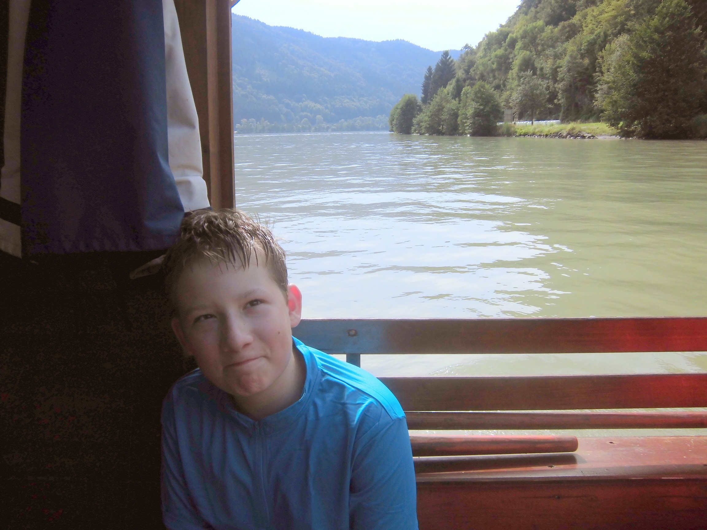 W Persenbeug jesteśmy o 14:00 i jesteśmy głodni, ale akurat nic poza lodami nie było. Mateusz usilnie namawiał na lody na obiad, ale wykazałem się rodzicielską odpowiedzialnością i dojechaliśmy do Granz, gdzie w końcu była wymarzona przez Mateusza pizza. Niesmaczna 🙂