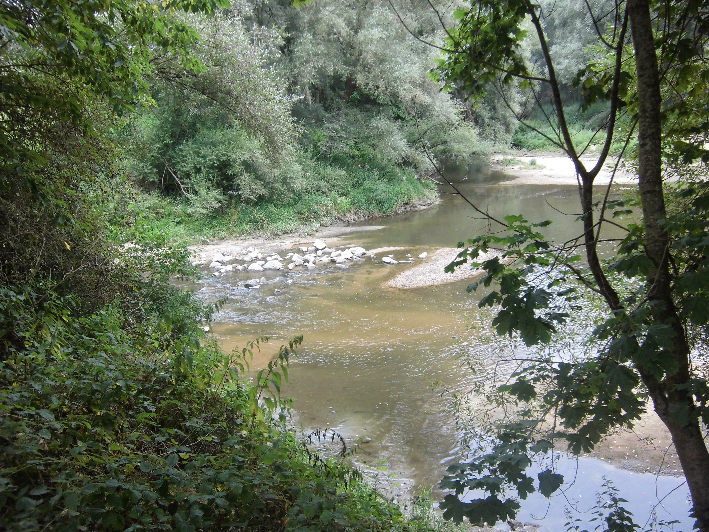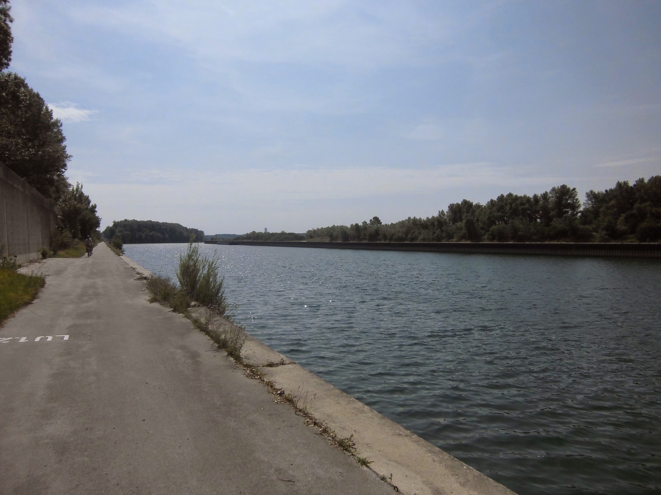 10km dalej, na tamie (z elektrownią – popularny tu napis: „kraftwerk”) decydujemy, by nie powtarzać drogi z poprzedniego wyjazdu i pojechać drugą stroną Dunaju (nie głównym szlakiem). Droga jest ładniejsza niż na głównym szlaku – robi się słoneczne, wczesne przedpołudnie, a okolica urokliwa.