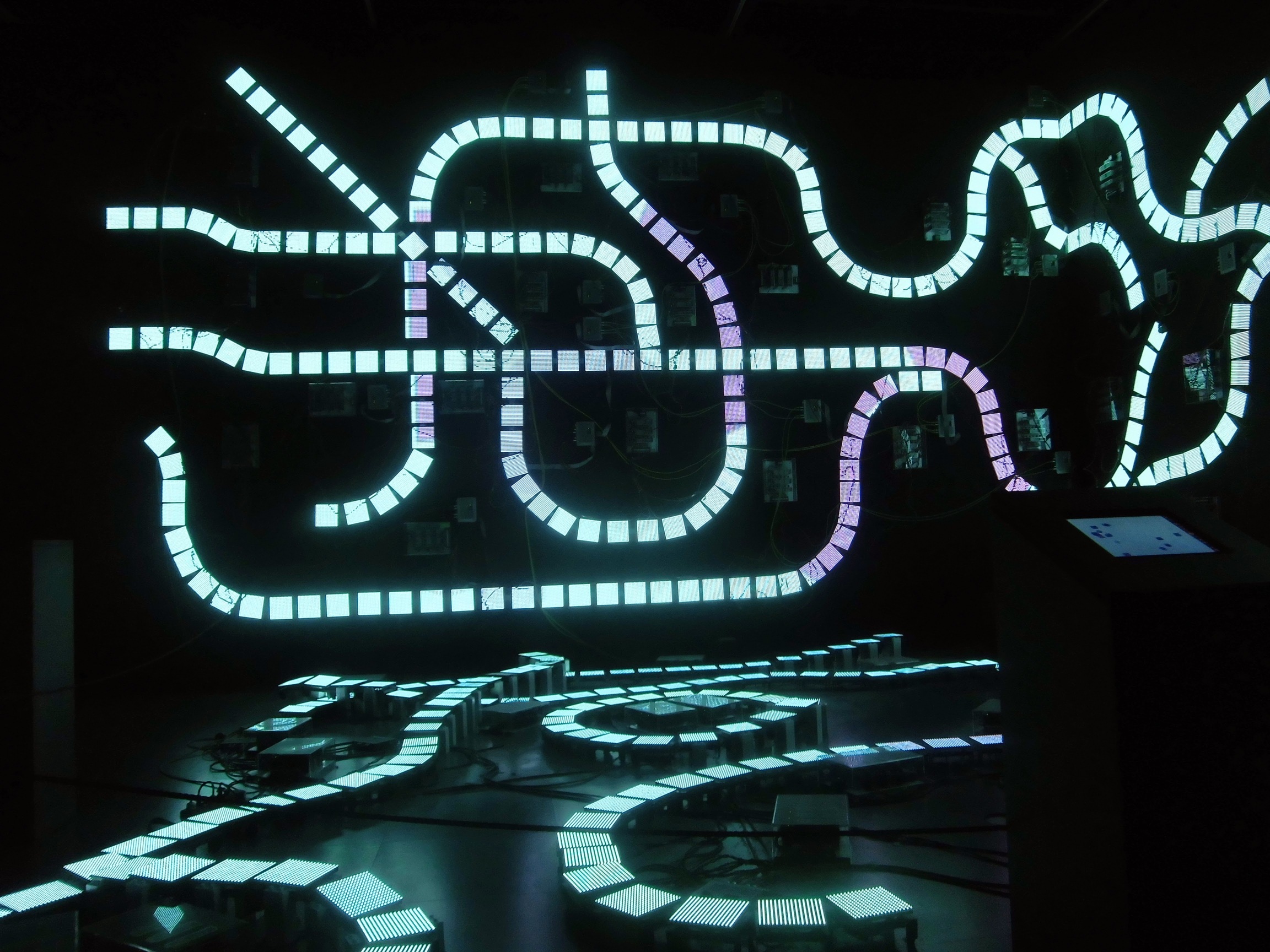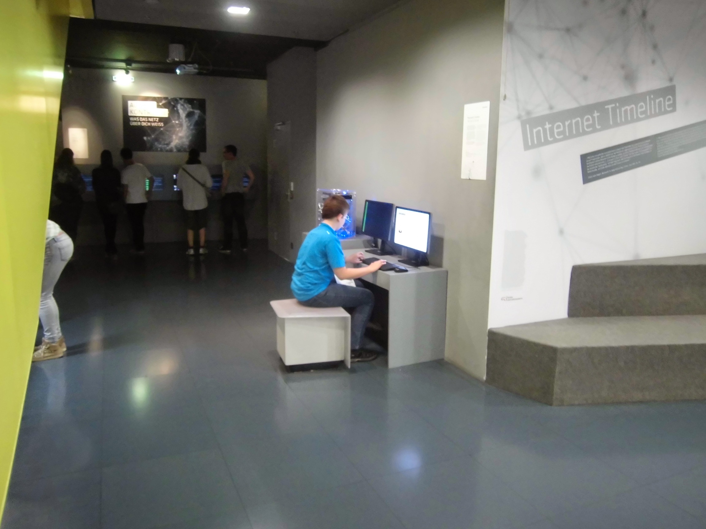 Zaczynamy od filmów 3D i filmów „Deep Space” rzucanych na całe pomieszczenie jakby w planetarium. To jest fajne. Dalej różnie – nie wszystko jest wciągające, niektóre miejsca wymagałyby znacznie więcej zaangażowania, żeby to miało sens (np. jakieś eksperymenty biologiczne czy zabawy drukarkami 3D). Mateusza najbardziej ciekawi ekspozycja z historii komputerów, a najwięcej czasu spędza przy niepozornym stanowisku, gdzie ładnie wizualizują proces łamania haseł (wpisujesz jakieś i patrzysz ile czasu trzeba na złamanie). W sumie był to bardzo dobrze spędzony czas i fajny przerywnik w podróży.