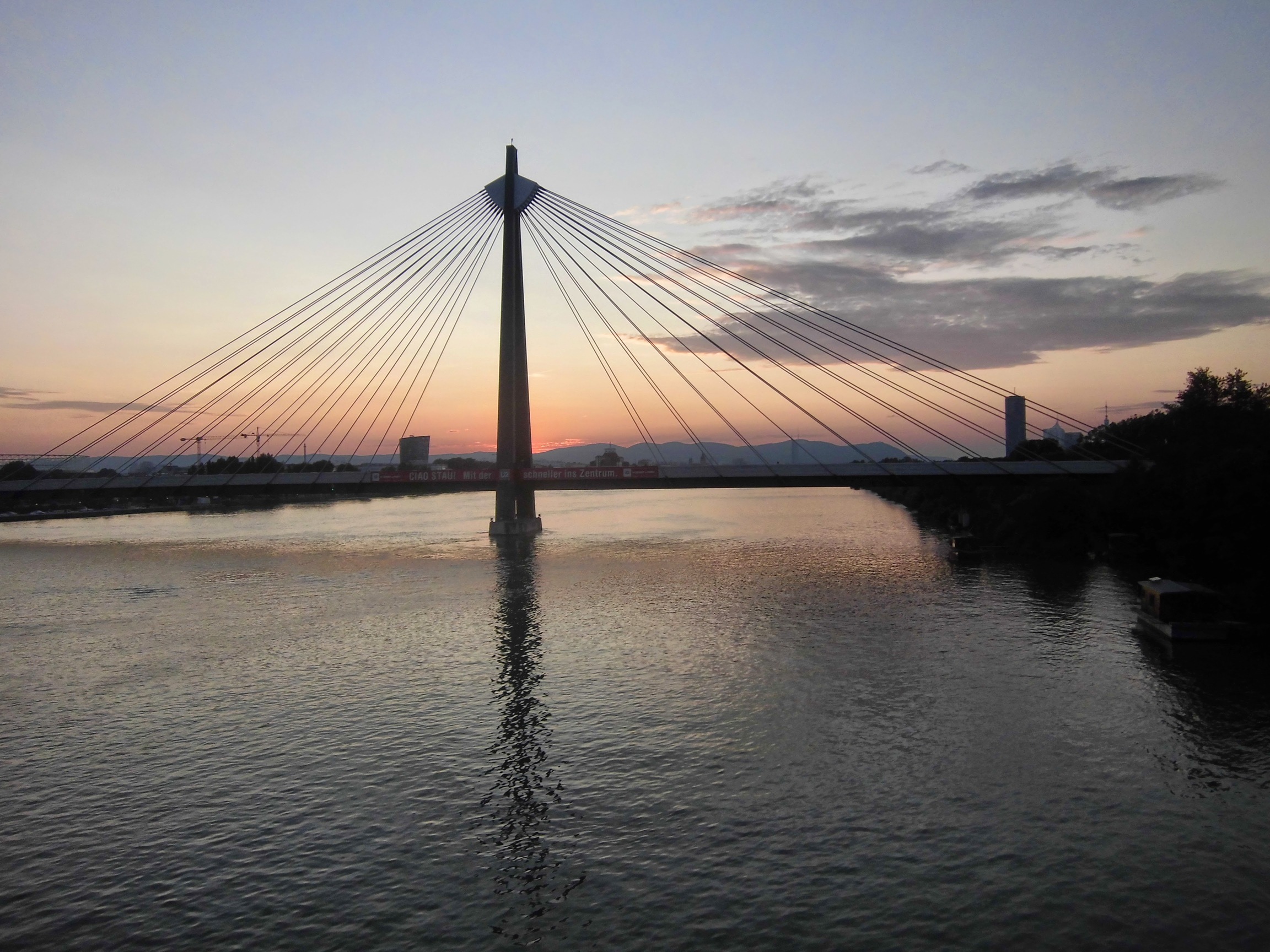 Droga wzdłuż Dunaju monotonna, skwar piecze ręce i uda mimo smarowania, pojawia się wiatr w twarz – jakby przed burzą (ale skończyło się na wietrze i skwarze). W Tulln pomniki, fontanny, itd – nuda. Im bliżej Wiednia tym bardziej „podmiejsko”. I w końcu dojeżdżamy: