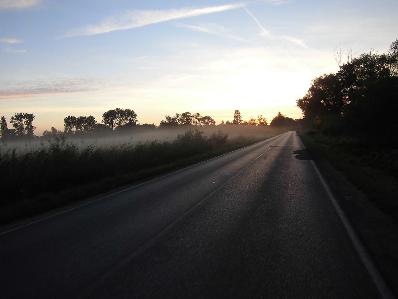 Start o brzasku może trochę boli (sam się obudziłem! budzik nie zdążył choć spałem tylko 4 godziny), ale daje szansę zobaczenia świata od ładnej strony. Puste drogi (nawet te „krajowe”), cisza, chłodek (nad Szreniawą temperatura spadła do 10 stopni):