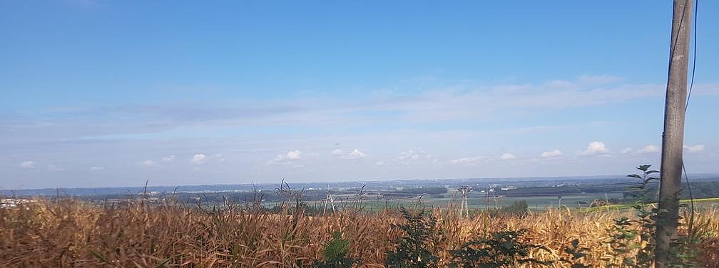 Wyjazd z Radomska w dużym ruchu ale potem bardzo miła droga przez pola – w rosnącym upale (ponad 30 stopni) ciągnę przed siebie i muszę przyznać, że sprawia mi to coraz większą przyjemność – przestaję się przejmować ogromem drogi przede mną, tylko cieszę się tym co widzę tu i teraz.