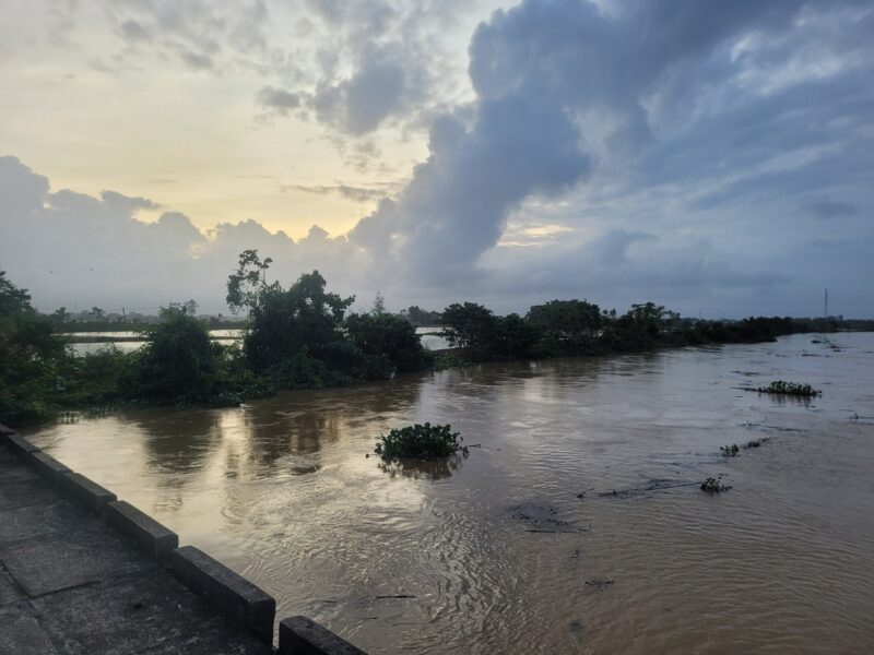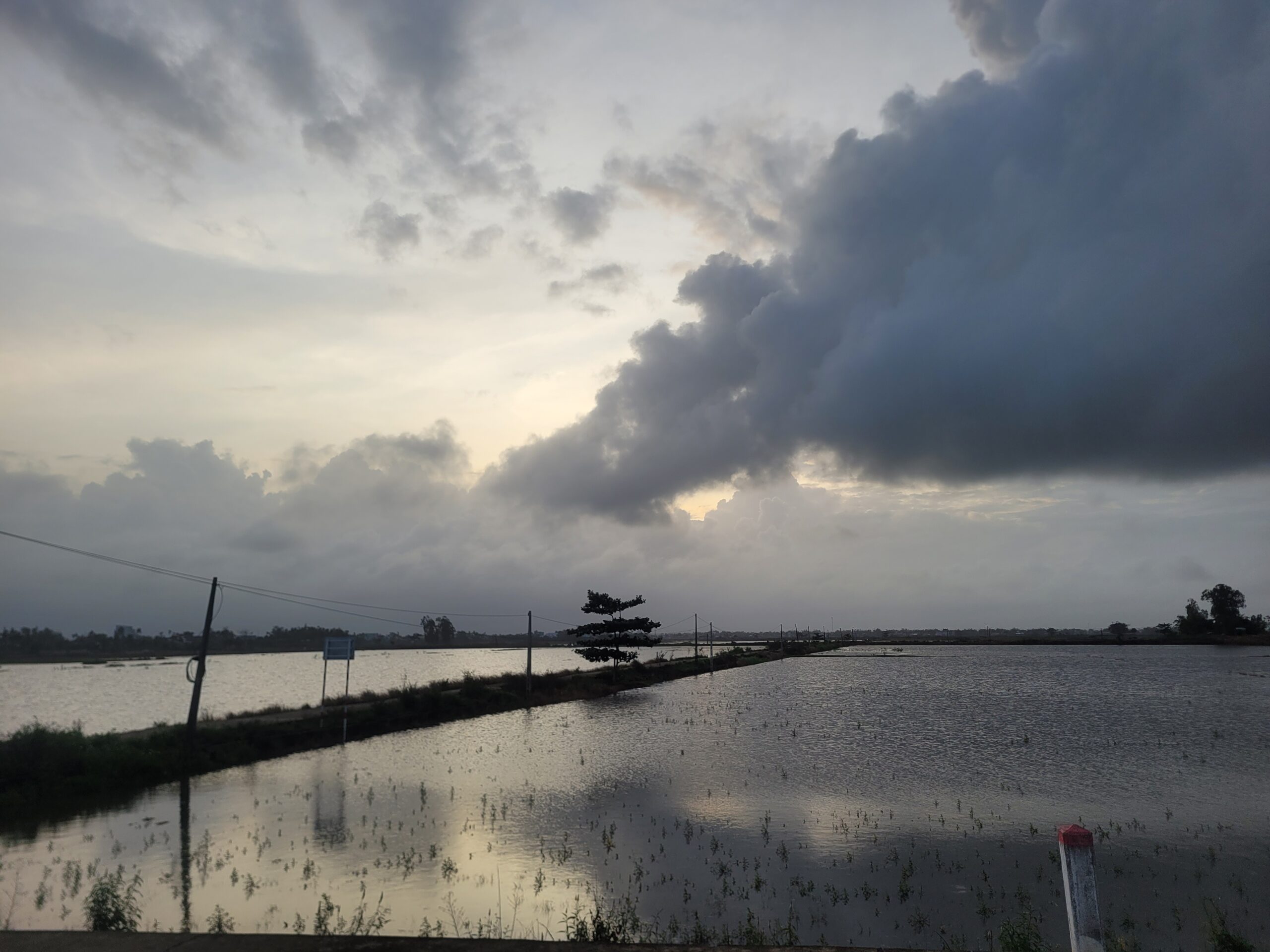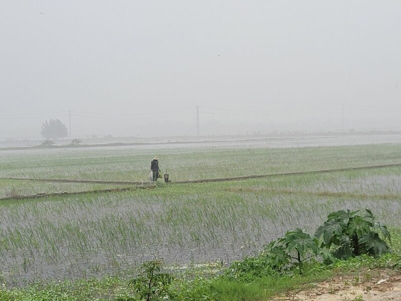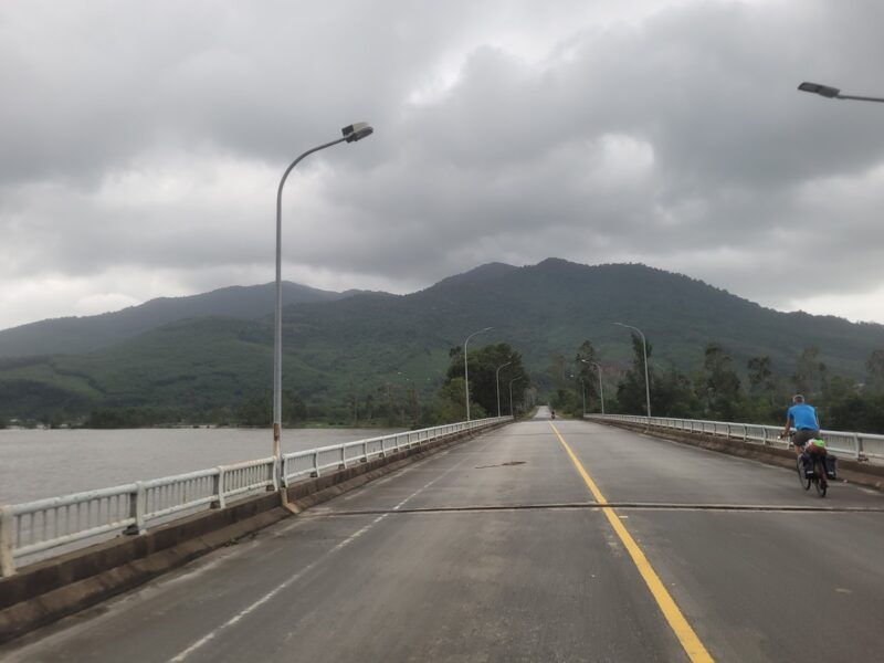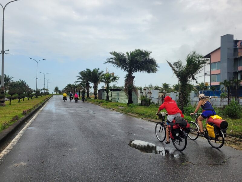 Już blisko miasta droga prowadzi tylko trochę ponad powierzchnią wody – tu dopiero co przeszły tajfuny i miejscami jest powódź. Jak się okazało (naszej trójce powiedziała o tym dziewczyna na skuterze, inni mieli mniej szczęścia) główna droga jest zalana, tak że trzeba jechać albo bardzo naokoło, albo groblami przez rozlewiska.