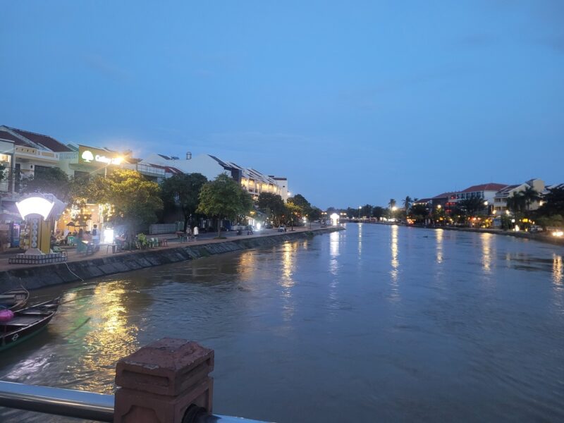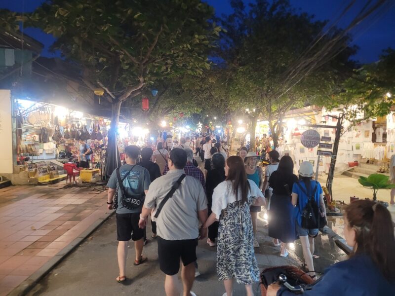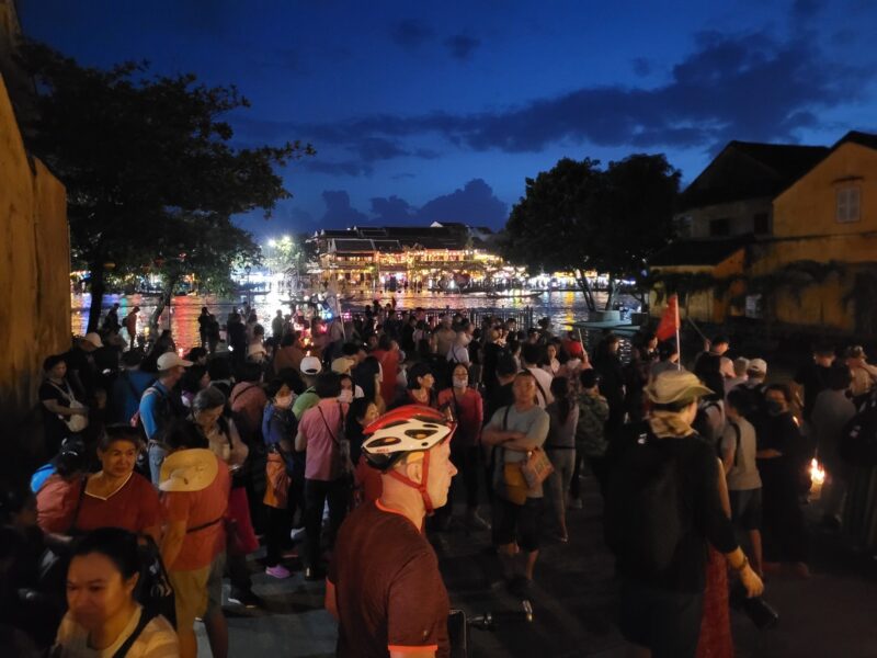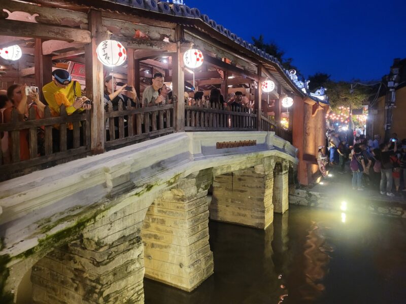 Przez Hoi An właśnie przechodzi fala powodziowa (nadbrzeża oraz niektóre mosty są zalane), ale wcale nie przeszkadza to tłumowi turystów. Jest gwarnie i świątecznie, a my umawiamy się na zebranie podgrup w samym epicentrum tego zgiełku – przy Moście Japońskim.