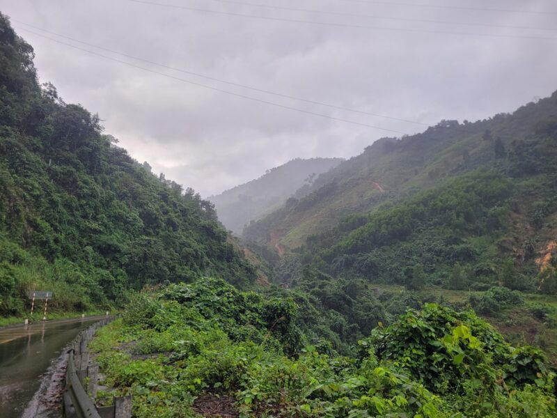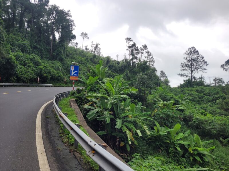 W końcu skrzyżowanie, gdzie odbija droga w góry – podjedziemy tam na granicę, choć informacje z Internetu mówią, że tam nam nie wyrobią wizy „on arrival”. Jednak doświadczenie Longina mówi, że szansa jest, a pełnoprawne przejście graniczne jest dopiero 100km dalej (Lao Bao) – warto spróbować.