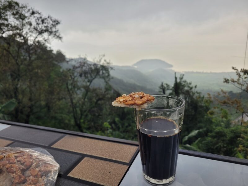 Przed ostatnim podjazdem – przemiły sklepik z pyszną kawą. Aż by się tam zostało, ale Longin mówi, że koniecznie musimy dziś wyjechać na płaskowyż. No to kręcimy – lepiej trochę pocierpieć niż rozwalać plan.