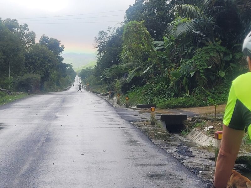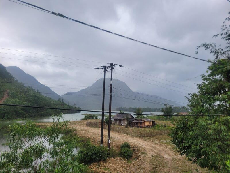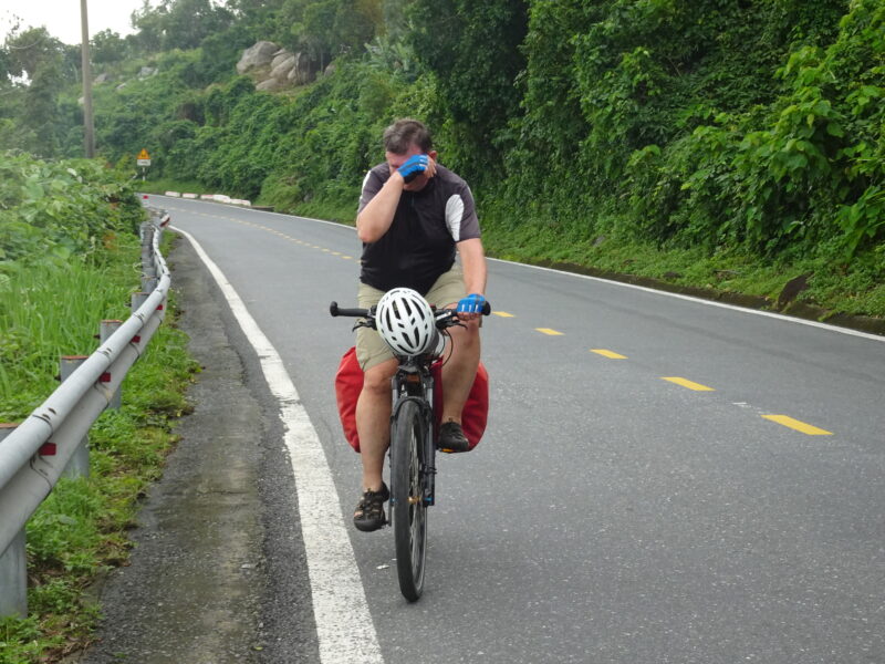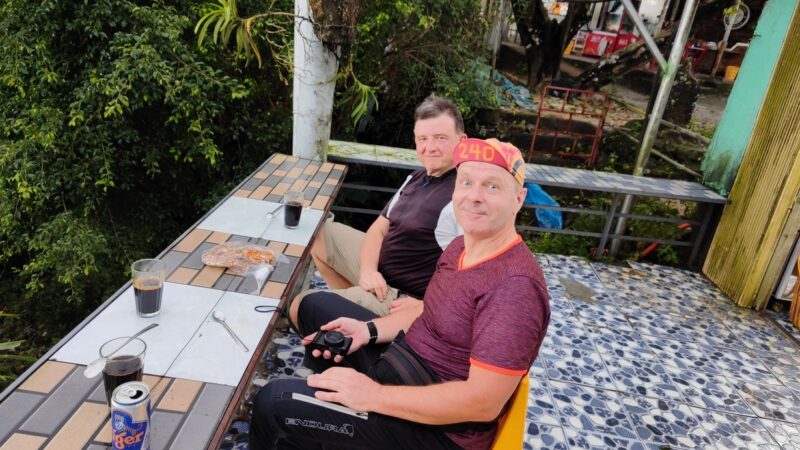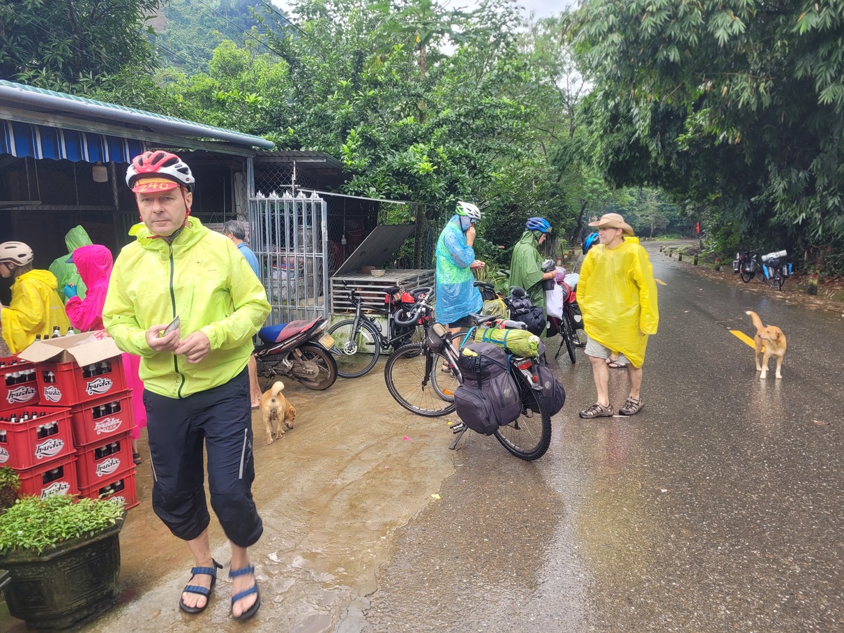 Rano lejba na całego, ale nie robi to wielkiego wrażenia: wiemy, że to już ostatni dzień (za górami, w Laosie, powinno być już sucho), poza tym peleryna przeciwdeszczowa i ciepłe mimo deszczu powietrze, to całkiem przyjemne połączenie.