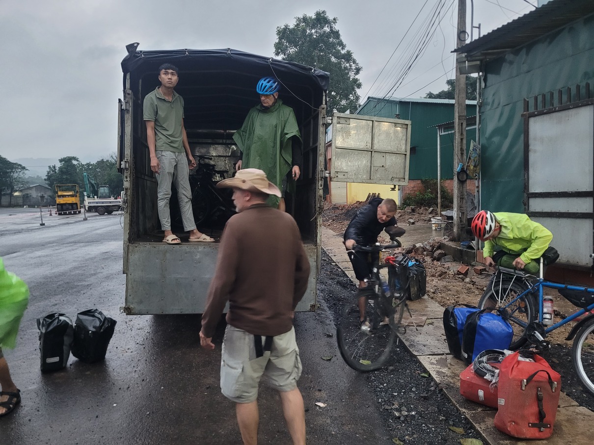 Ja mam miejsce przy oknie, więc pod koniec trasy półsennie oglądam deszczowy Wietnam o poranku. A potem wysiadka (na skrzyżowaniu przed Hoi An), skręcamy rowery i wreszcie przestajemy być transportowani.