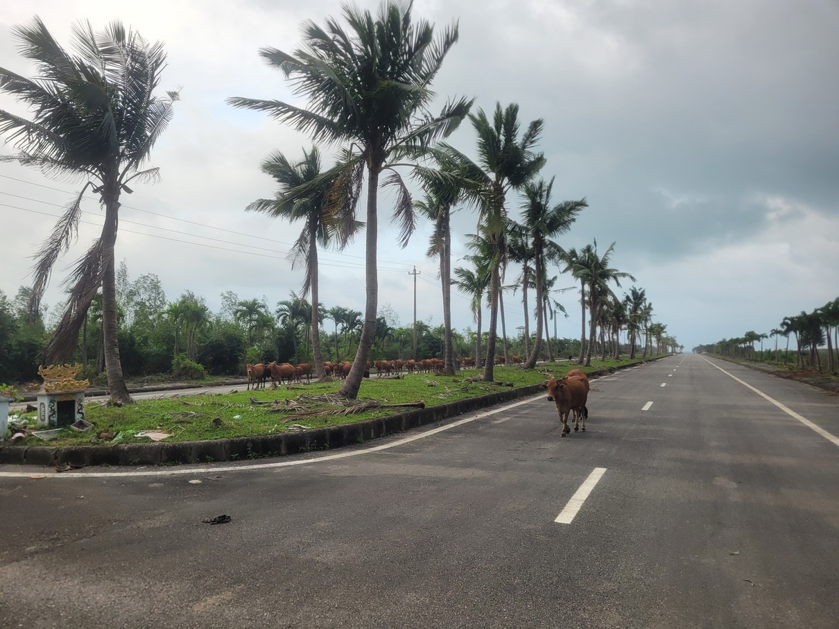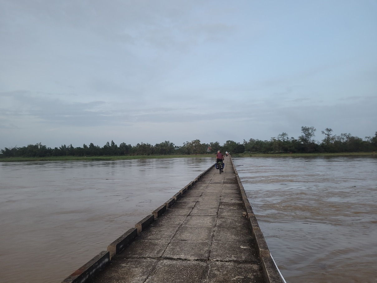 Już blisko miasta droga prowadzi tylko trochę ponad powierzchnią wody – tu dopiero co przeszły tajfuny i miejscami jest powódź. Jak się okazało (naszej trójce powiedziała o tym dziewczyna na skuterze, inni mieli mniej szczęścia) główna droga jest zalana, tak że trzeba jechać albo bardzo naokoło, albo groblami przez rozlewiska.