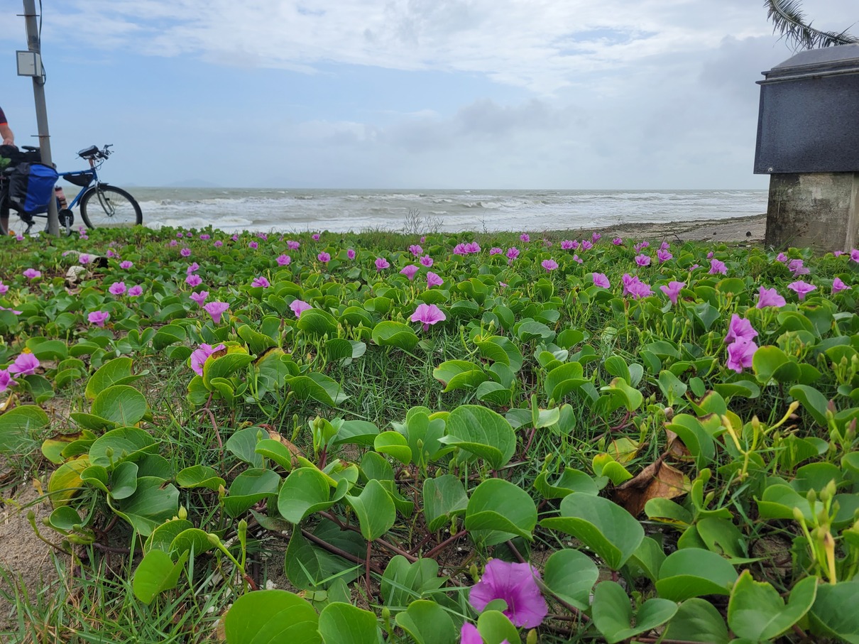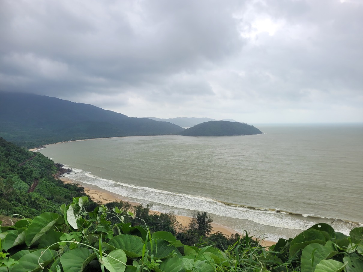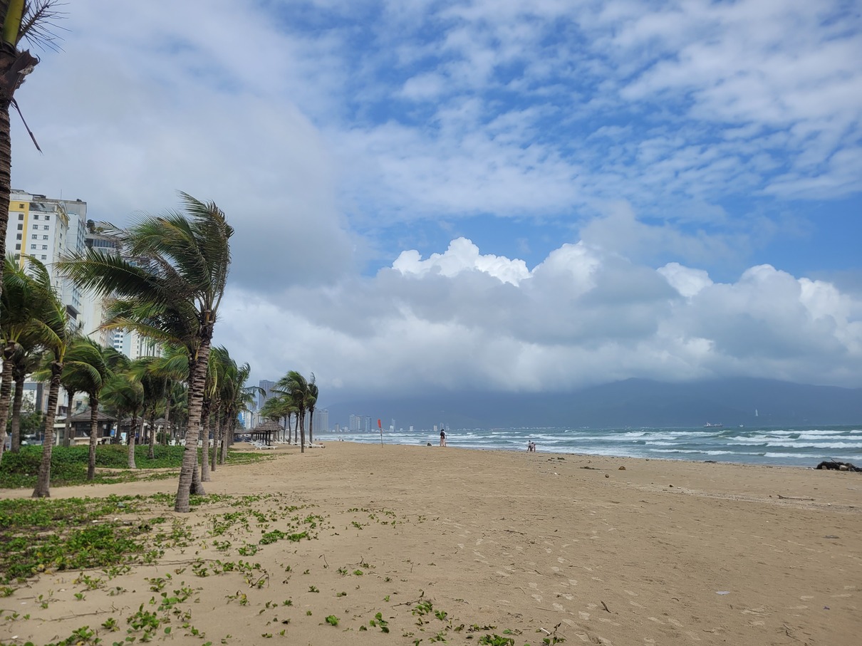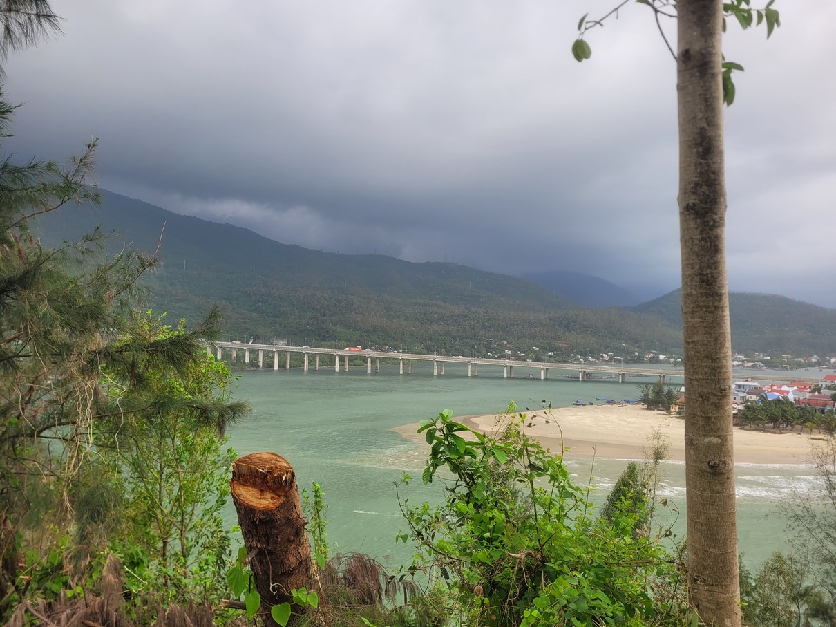 Jednak gdy wstępujemy na obiad, do knajpki z owocami morza na przedmieściach Da Nang, to zaczyna lać solidnie. Knajpka miła, fajnie się w niej siedzi patrząc na deszcz, tak że nie bardzo się chce z niej wychodzić, zwłaszcza, że usłużny Google podpowiada, że po drodze mogą być zalania przez powódź, a do tego na drodze są tunele, być może z zakazem jazdy rowerem.
