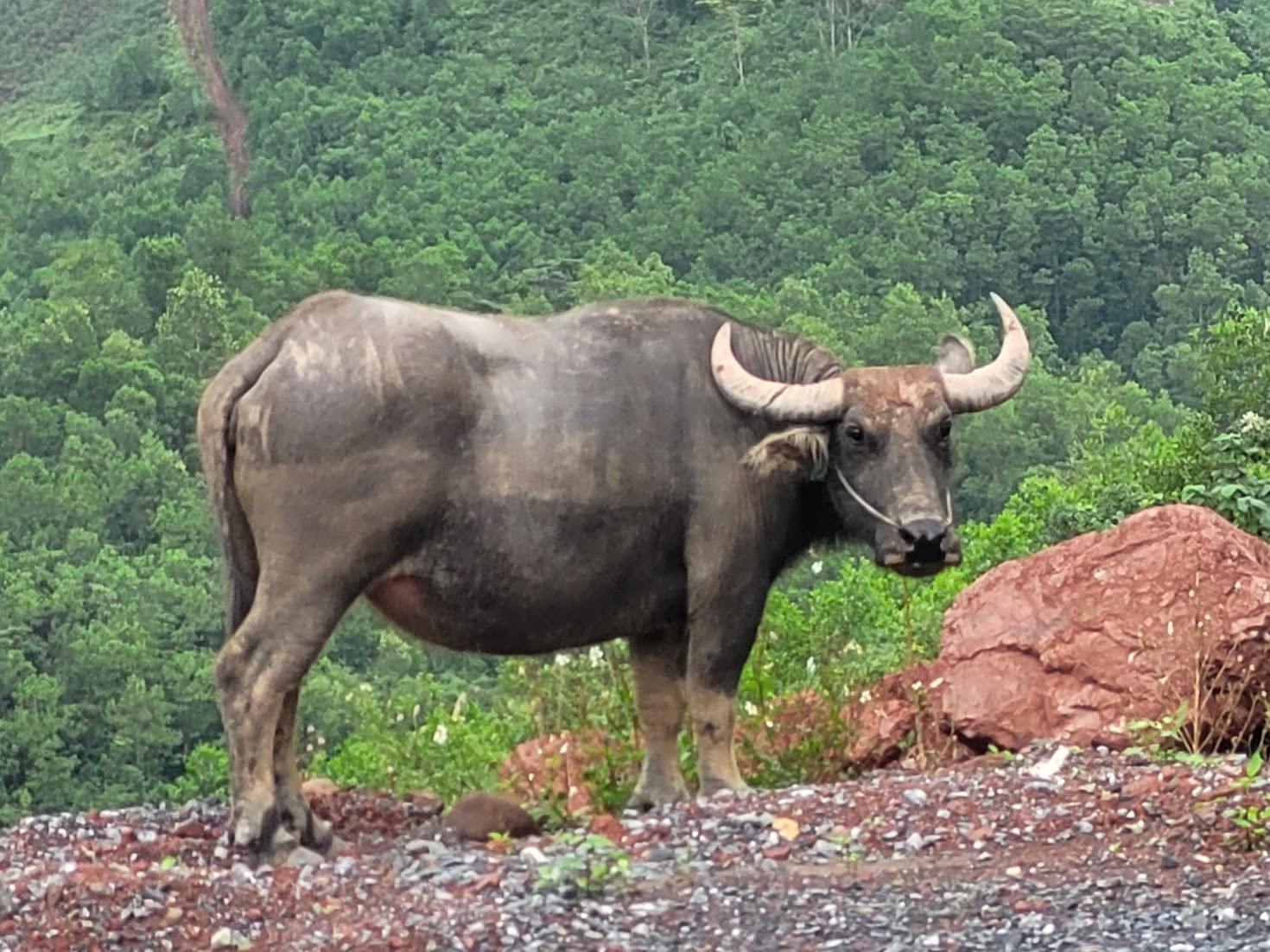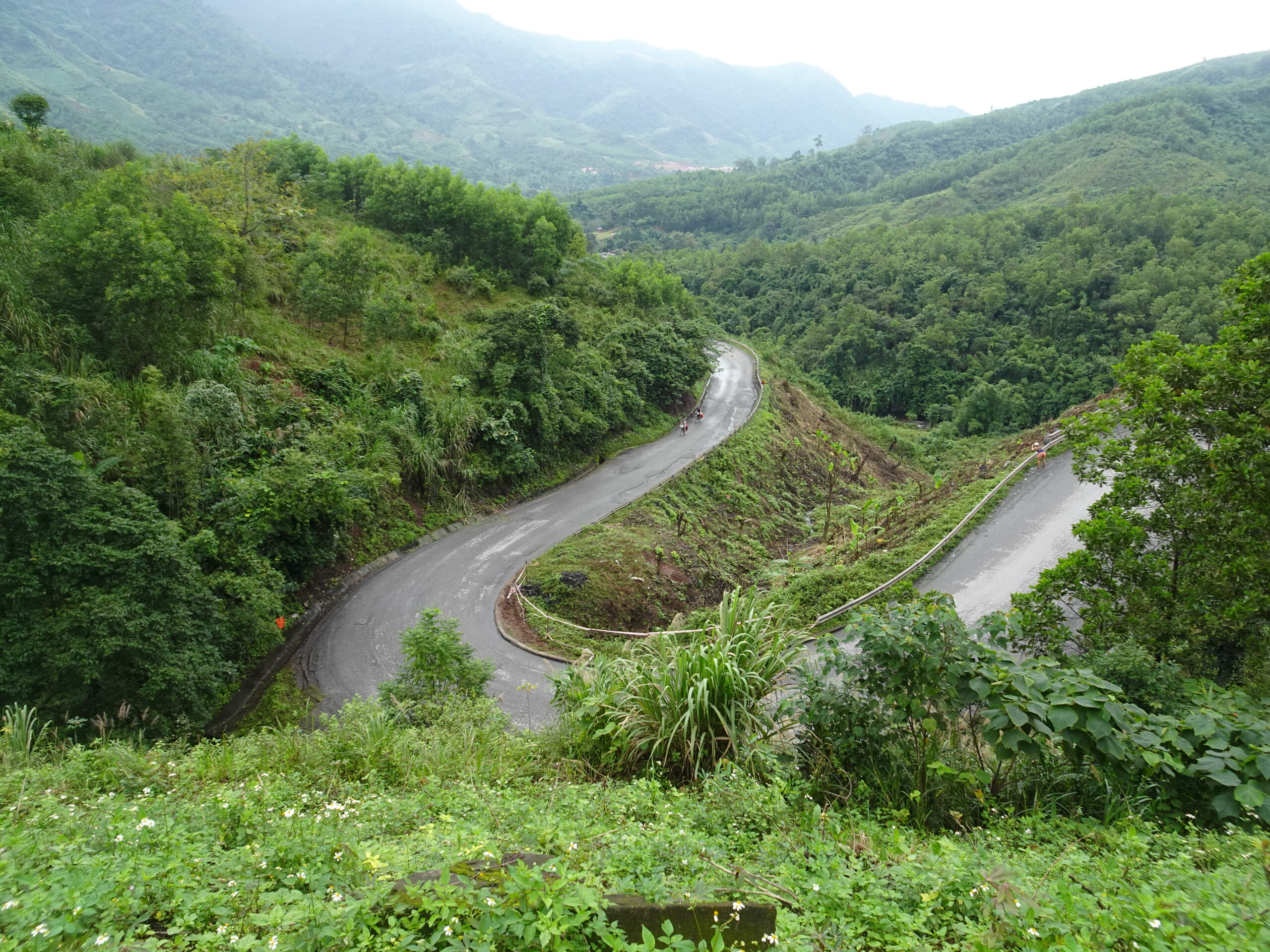 Boczne drogi za przełęczą intrygują szerokimi pasami idealnego asfaltu (po których przechadzają się krowy), a jak się w końcu okazało – zapełniają się tłumem skuterków po zakończeniu zmiany w fabryce.