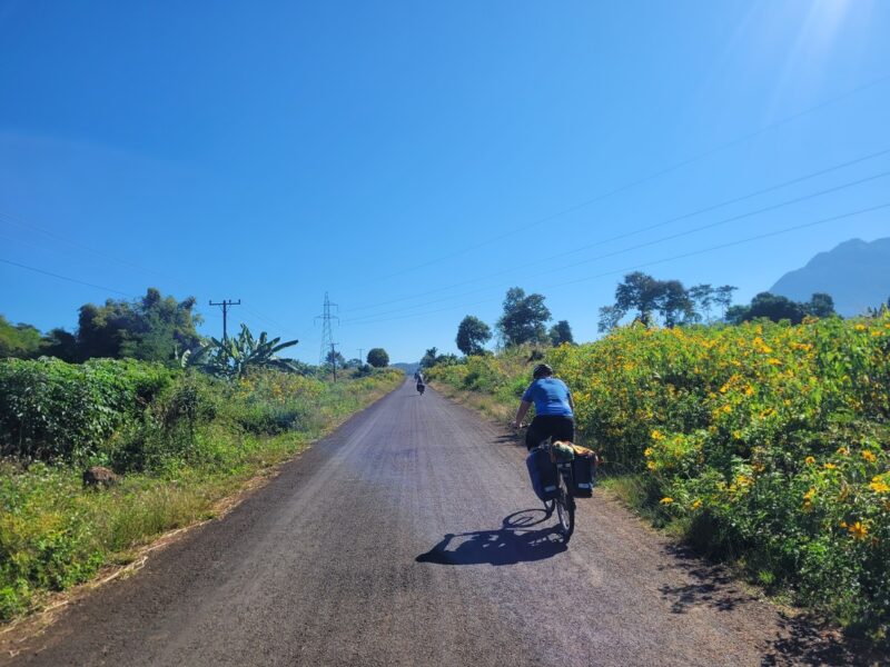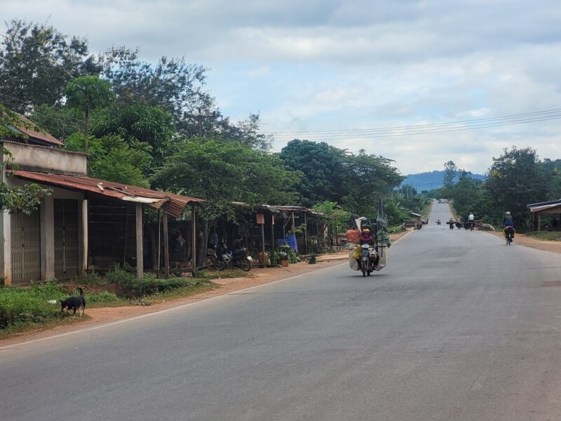 Po drugiej stronie Mekongu droga bardzo porządna. Czyli w zasadzie nudna… W zasadzie, bo problemy żołądkowe Ewy eskalują – temperatura 37.8° i niemoc.