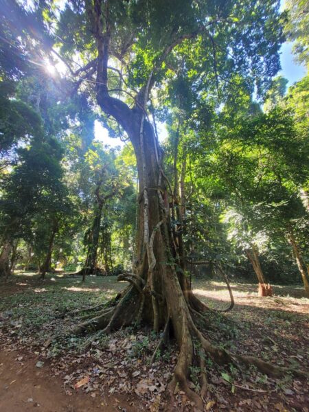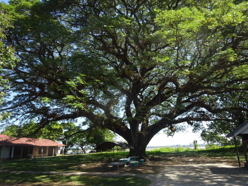 Niby jedziemy wzdłuż Mekongu, ale nie bardzo go widać z drogi. Za to zobaczymy go w całej okazałości, gdy zjedziemy w bok, skuszeni widokiem niesamowitego, ogromnego drzewa obok drogi: