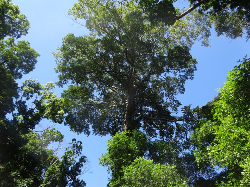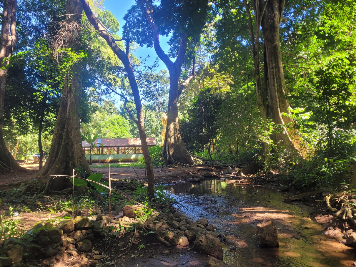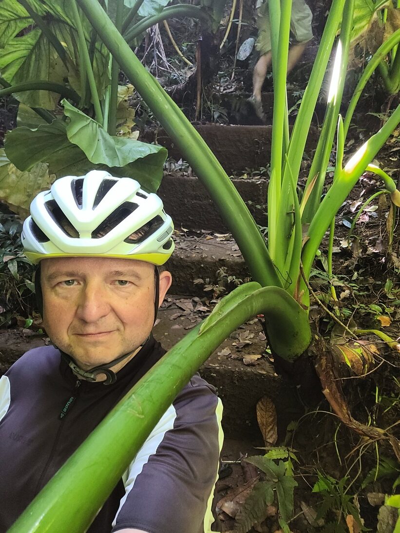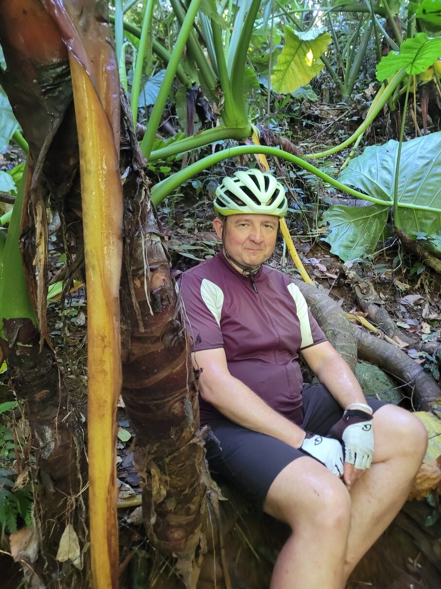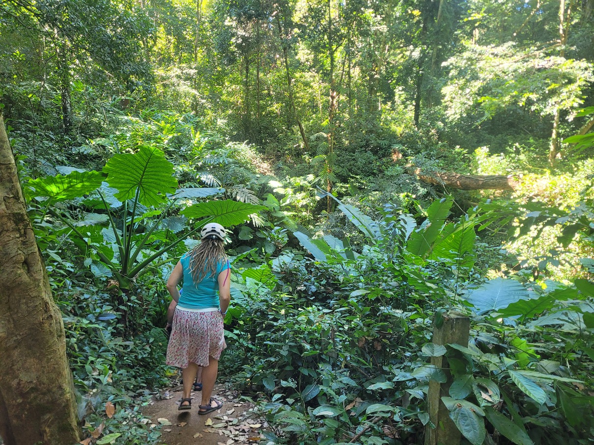 Wjeżdżamy gruntową drogą do lasu. Sam las to miła odmiana – roślinność tu bujna, ale to co zwykle tu widzimy, to jakieś plantacje, a jeśli drzewa, to albo nieliczne albo ponacinane dla zbierania soku. A tutaj po prostu las.
