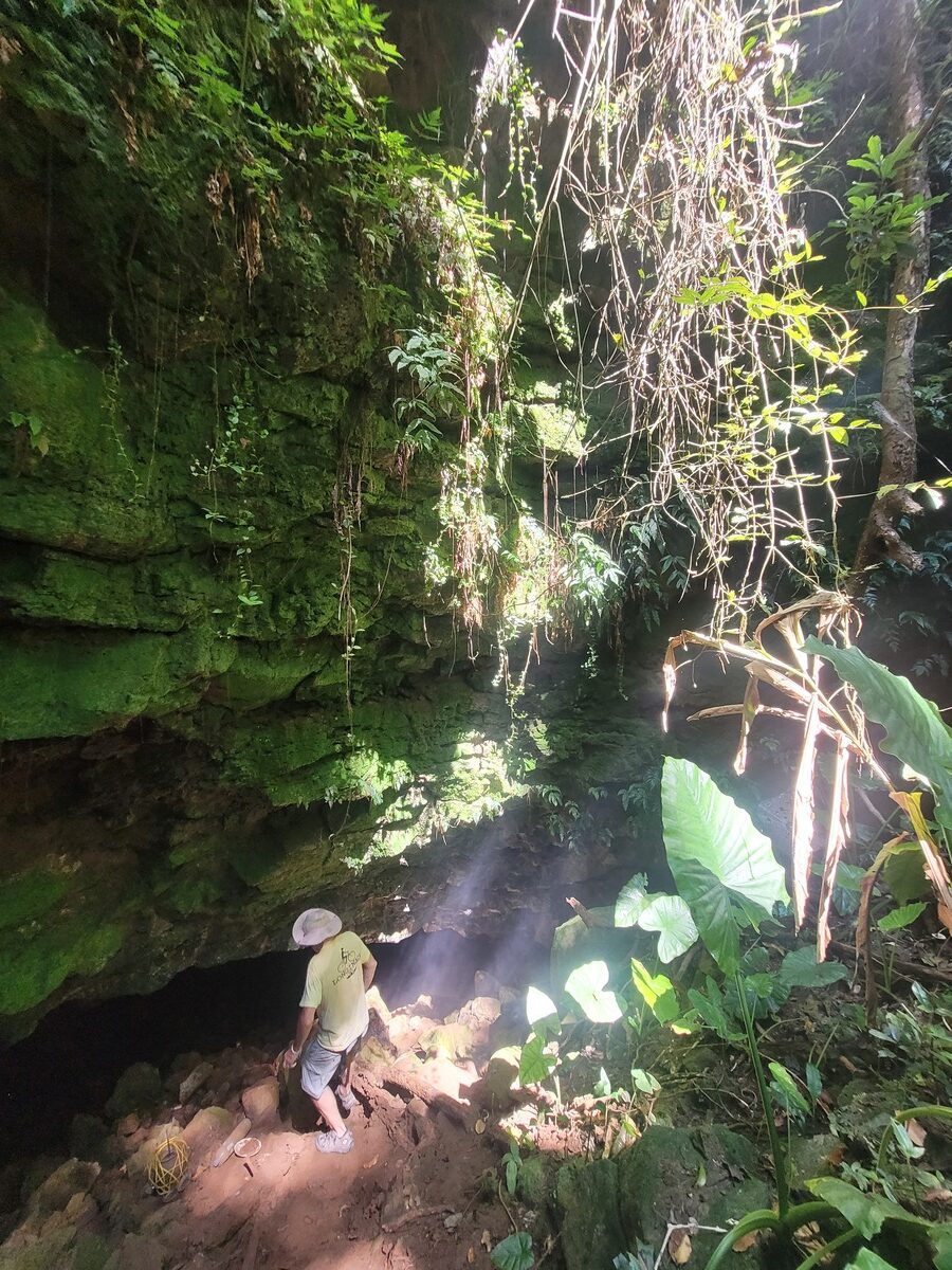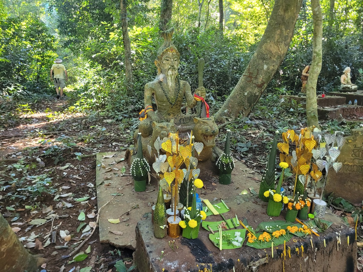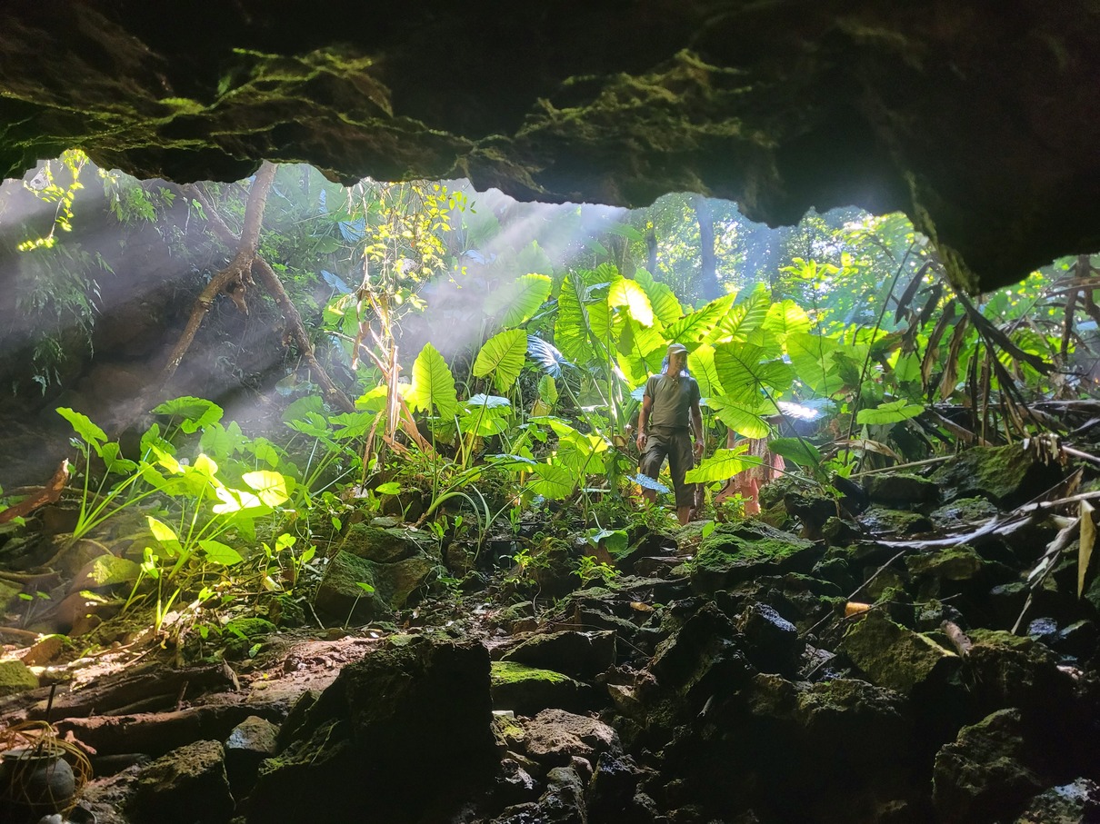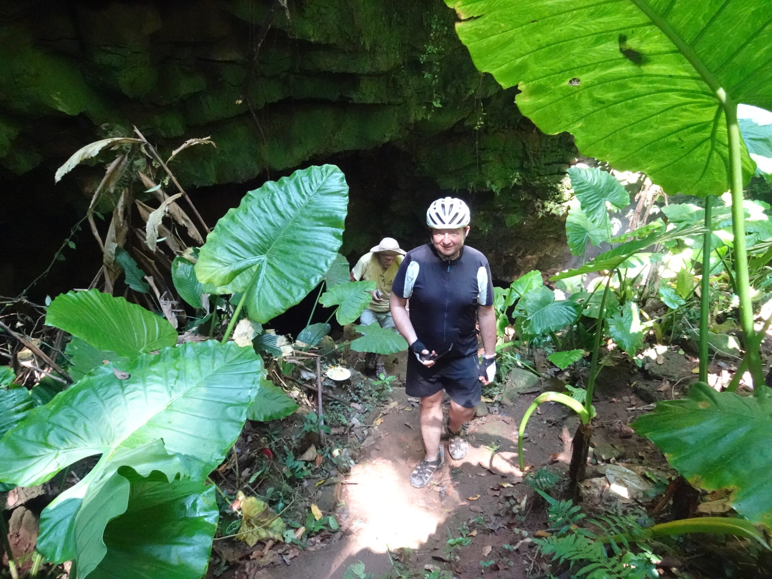 Przy wejściu do jaskini delikatna mgiełka wymieszana z dymem kilku kadzidełek. Pod tymi wielkimi liśćmi można się poczuć malutkim, a ciemne wnętrze intryguje mrokiem. Wrażenie robi to na mnie ogromne.
