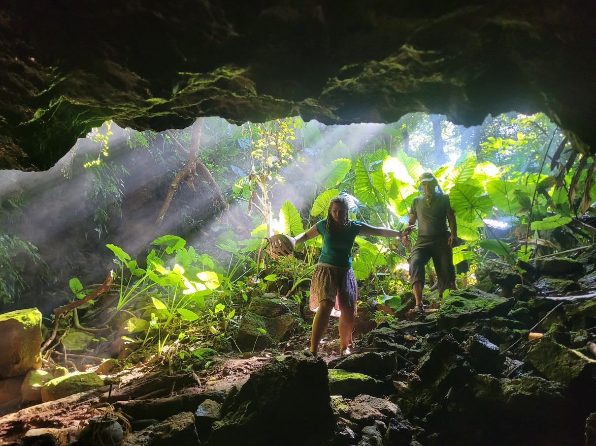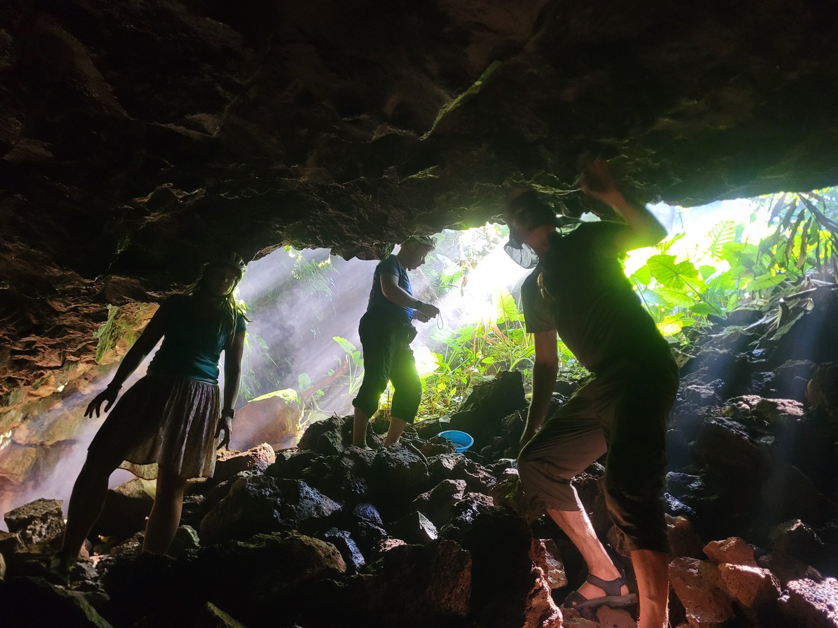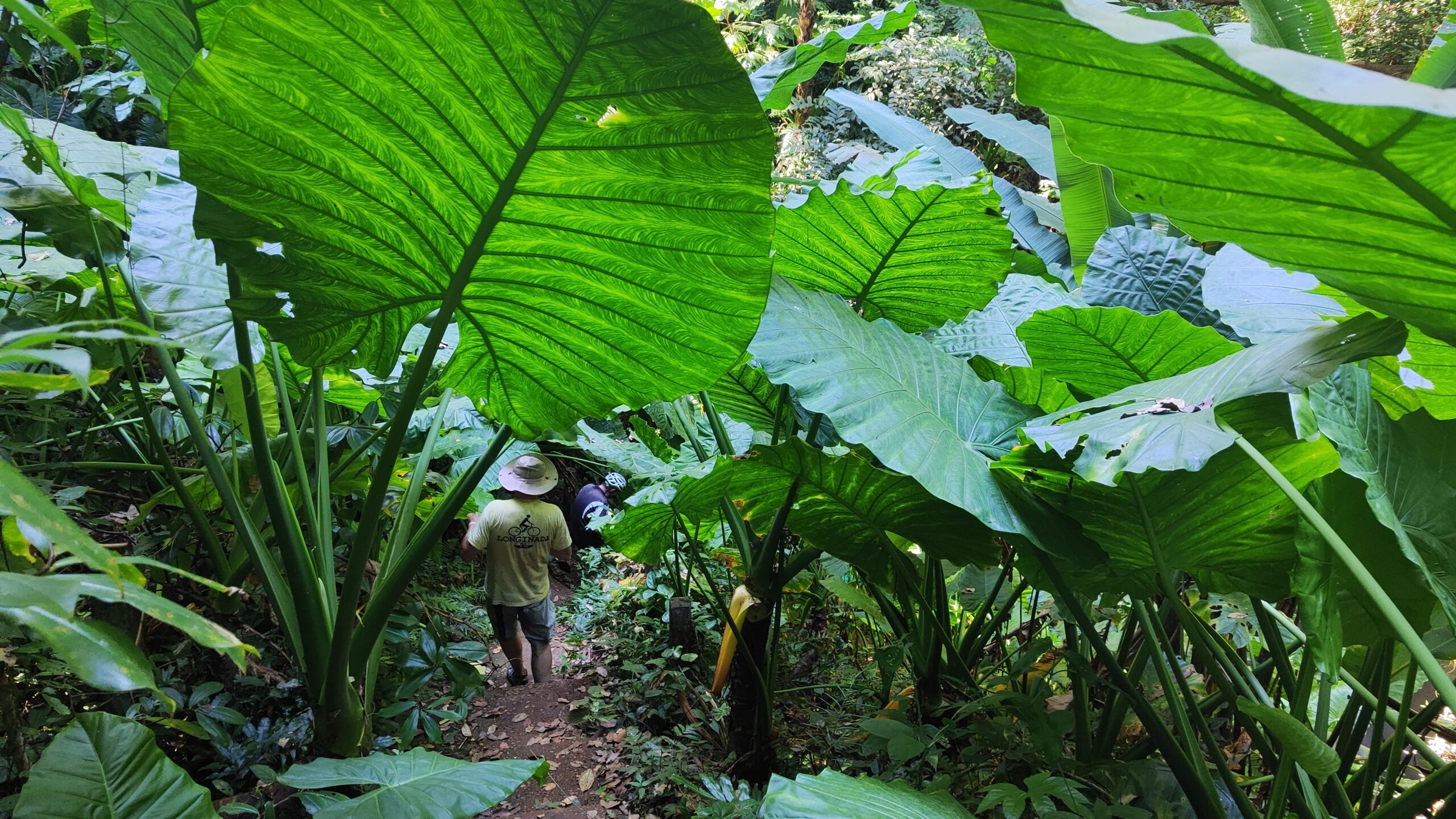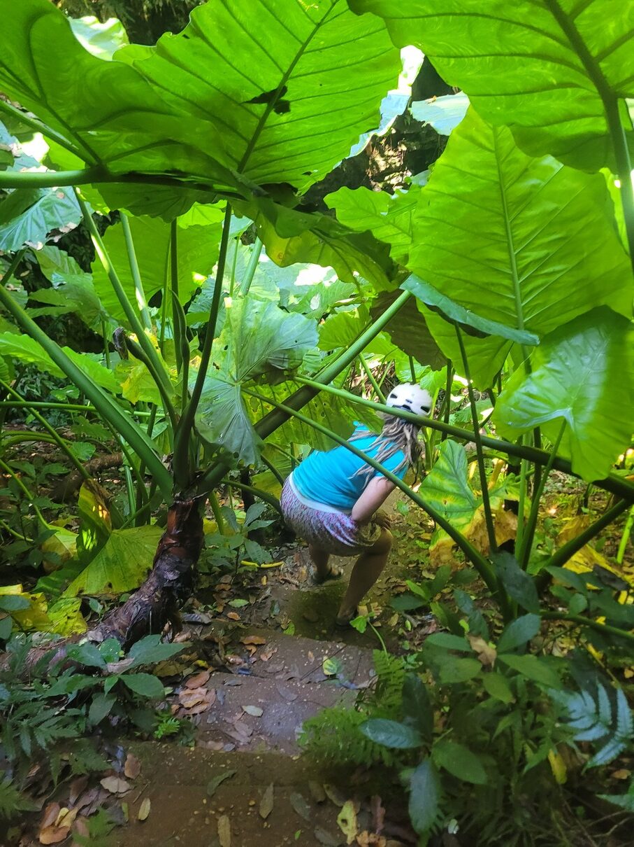 Przy wejściu do jaskini delikatna mgiełka wymieszana z dymem kilku kadzidełek. Pod tymi wielkimi liśćmi można się poczuć malutkim, a ciemne wnętrze intryguje mrokiem. Wrażenie robi to na mnie ogromne.