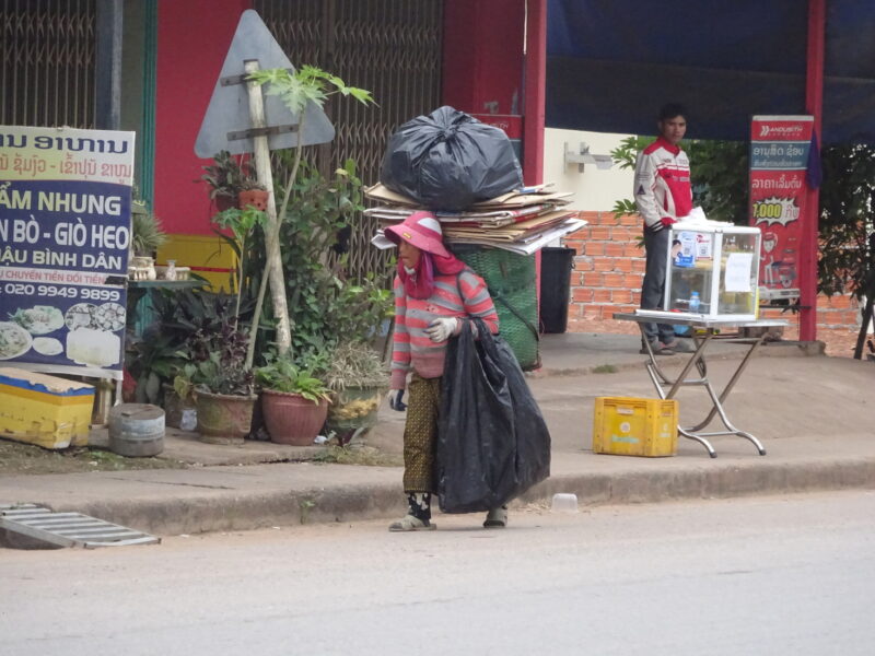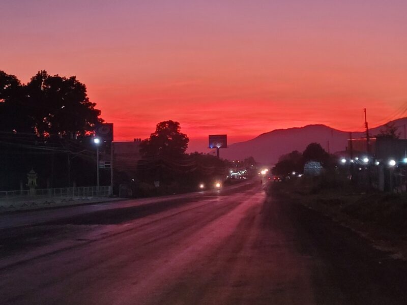 Jak zawsze tu o zmroku, w powietrzu unosi się smród palonych śmieci, ale tutaj, przy wjeździe do dużego miasta jest po prostu straszny, męczący smog. Co prawda dzięki smogowi zachód słońca jest spektakularny, ale raczej nie zostanę fanem laotańskich miast.