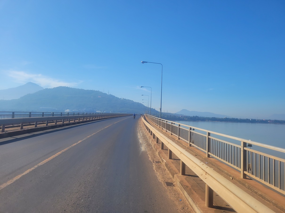 Potem most nad ogromnym Mekongiem i w końcu wyjeżdżamy z miasta i jego paskudnej czapy smogu. Grupę doganiamy wkrótce.
