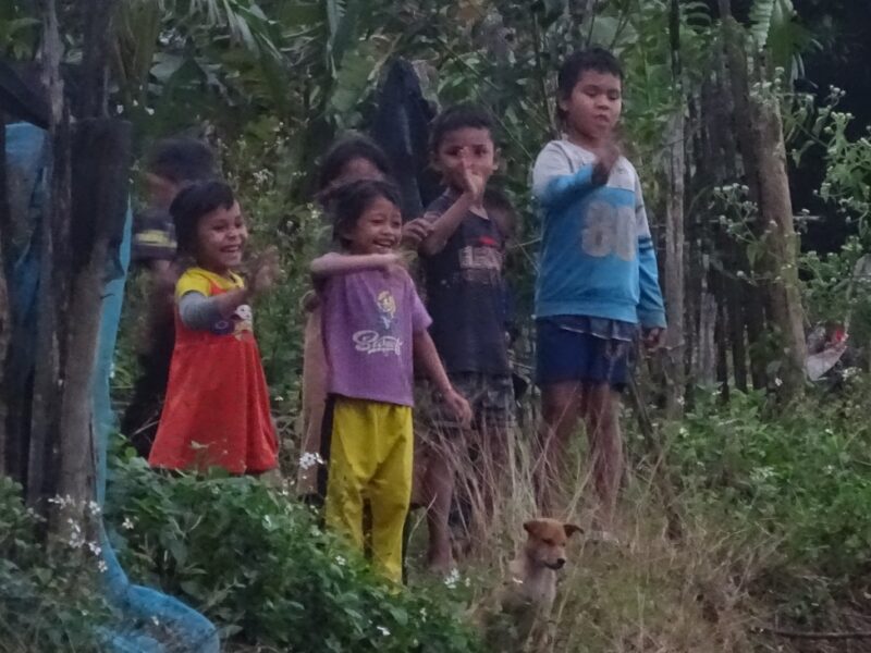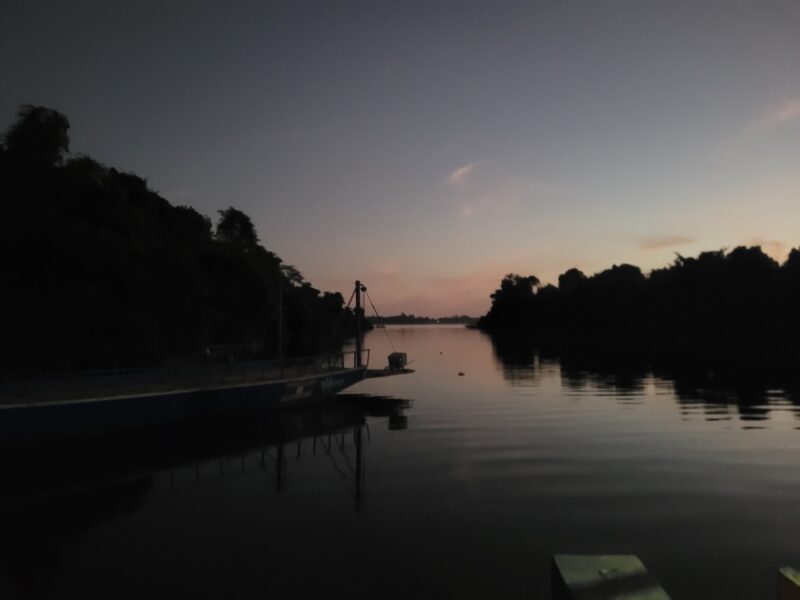 Przy promie chwila zwątpienia – już po zmroku, nikogo nie ma, jak my się przedostaniemy na drugą stronę? Ale wkrótce pojawiają się światła latarek, kilkoro dzieci, a zaraz potem i promowy – płyniemy.