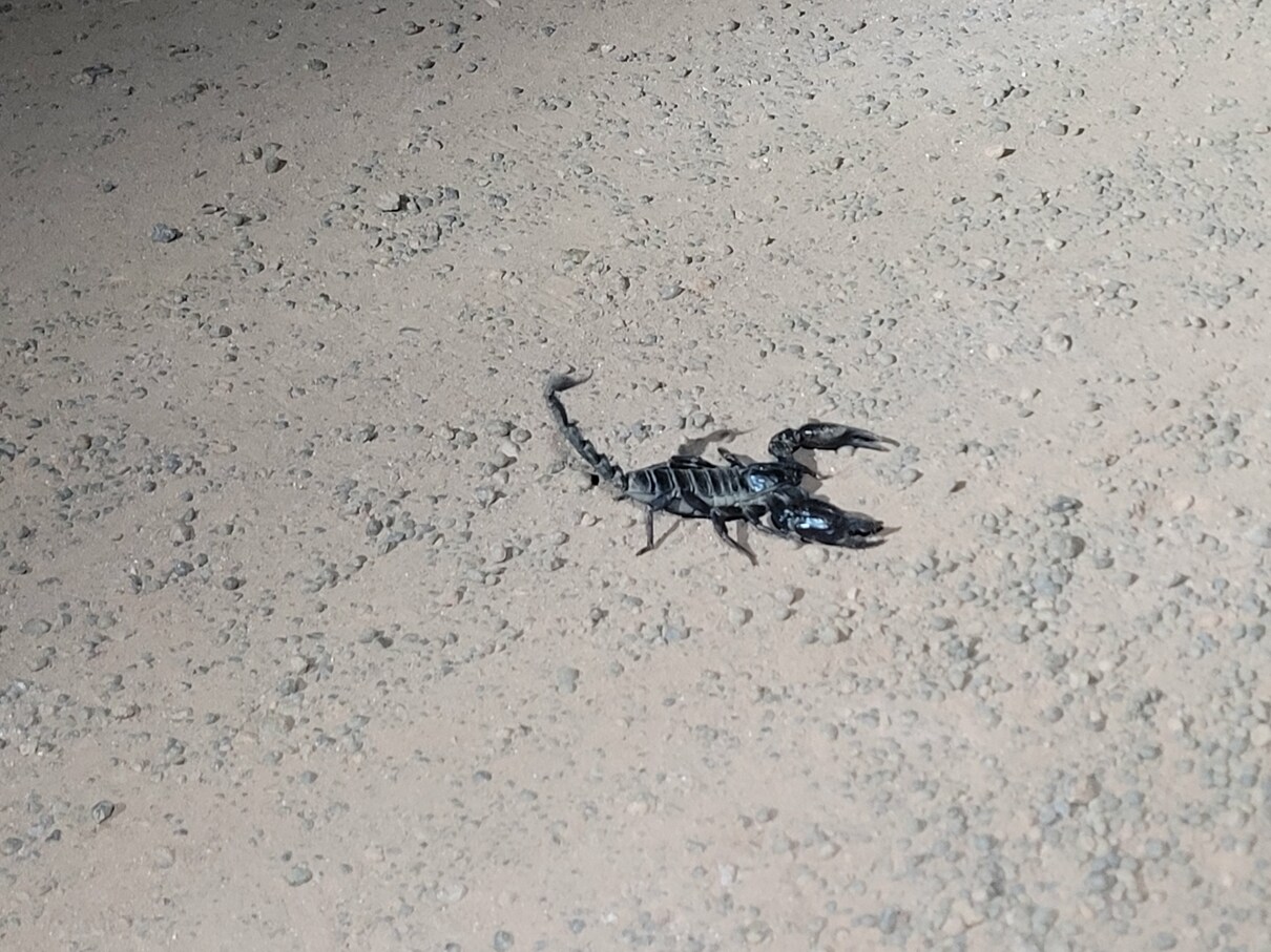 Po drodze spokojne wioski, pozdrowienia od dzieci i dorosłych. Oraz spotykamy skorpiona – zaniepokojony przyjął pozę bojową: