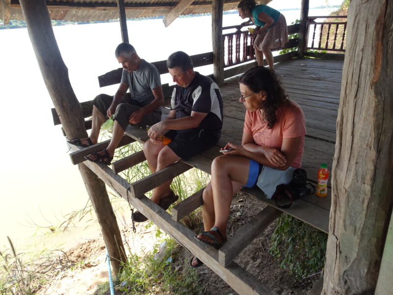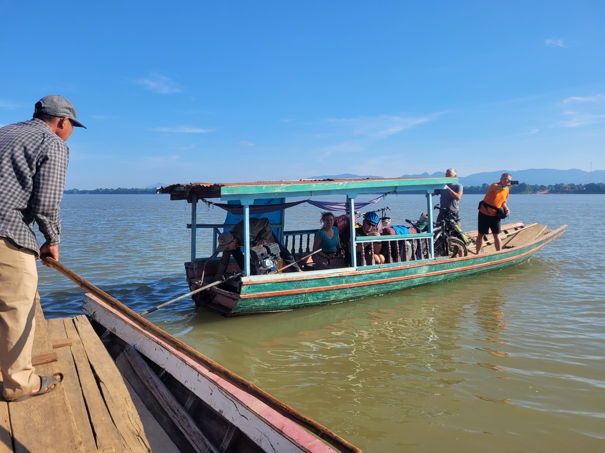 Zdzwaniamy się z Adamem: mówi, że on już po przeprawie (jak się potem okazało, on nie płynął tym promem – dojechał aż do ujścia dopływu do Mekongu, gdzie zabrała go jakaś łódka). Będziemy się łapać dalej.