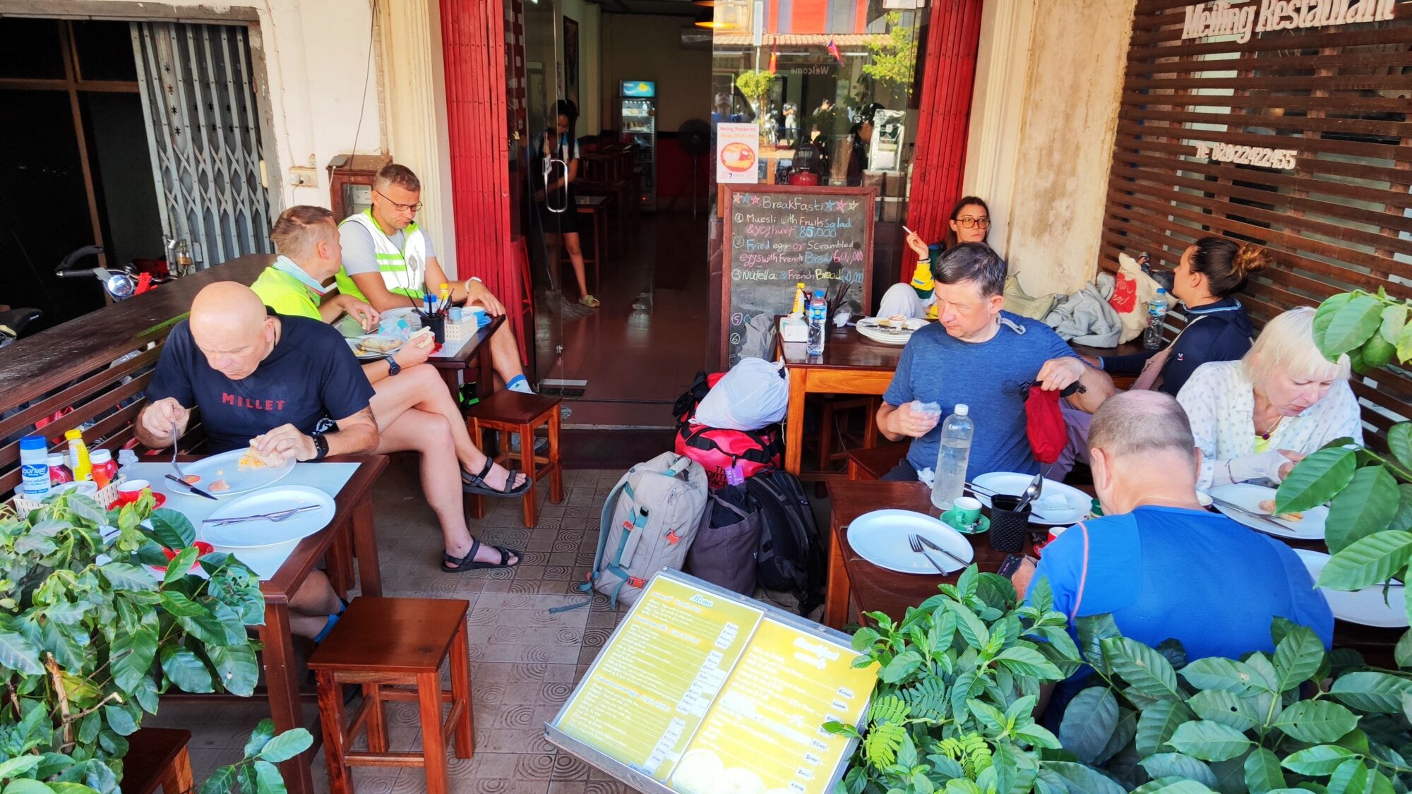 Poranek optymistyczny: nie leje (choć chmury początkowo ciemne) i otoczenie wyraźnie inne niż w Wietnamie.