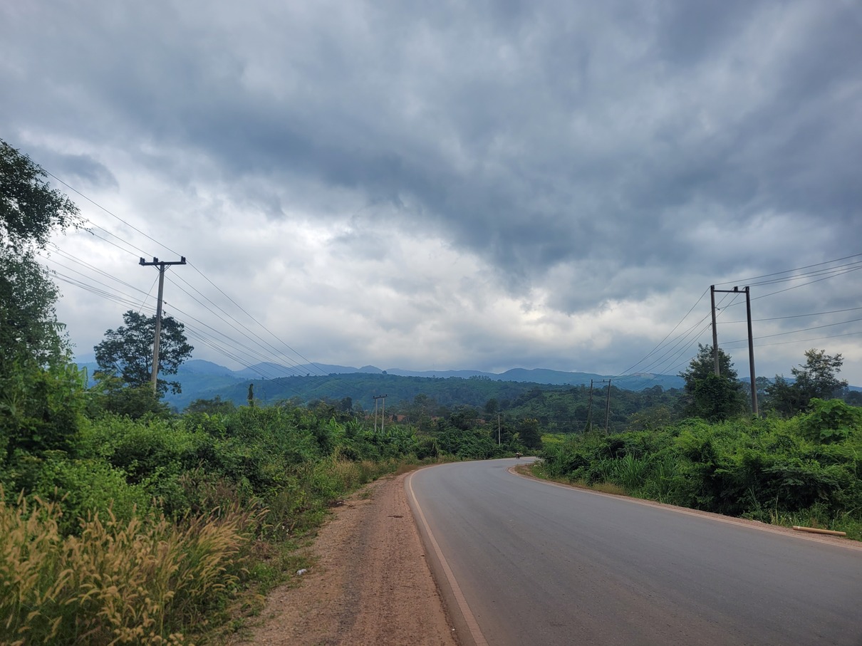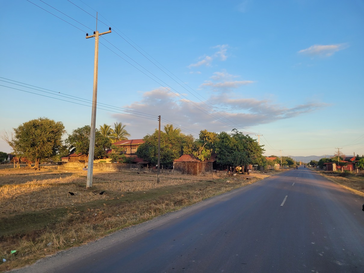 Czekamy na koniec asfaltu, ale ten ciągle jest – droga jest nowa i bardzo wygodna. A przy drodze pełno punktów skupu manioku, zasilających fabryczkę na jej południowym krańcu.