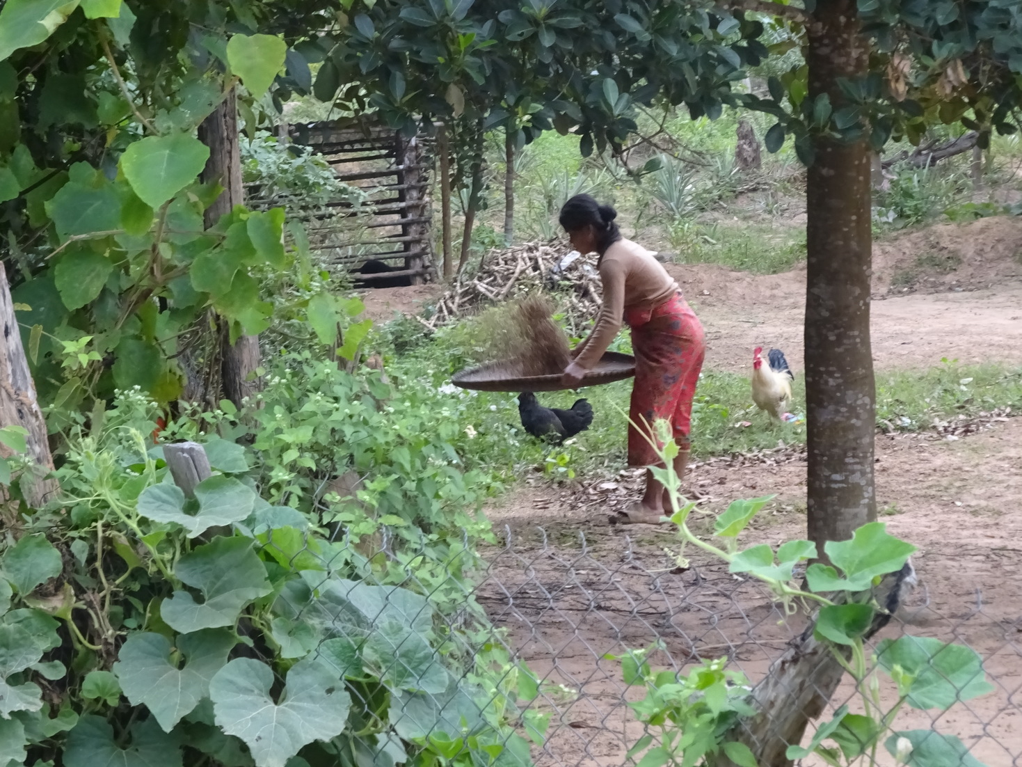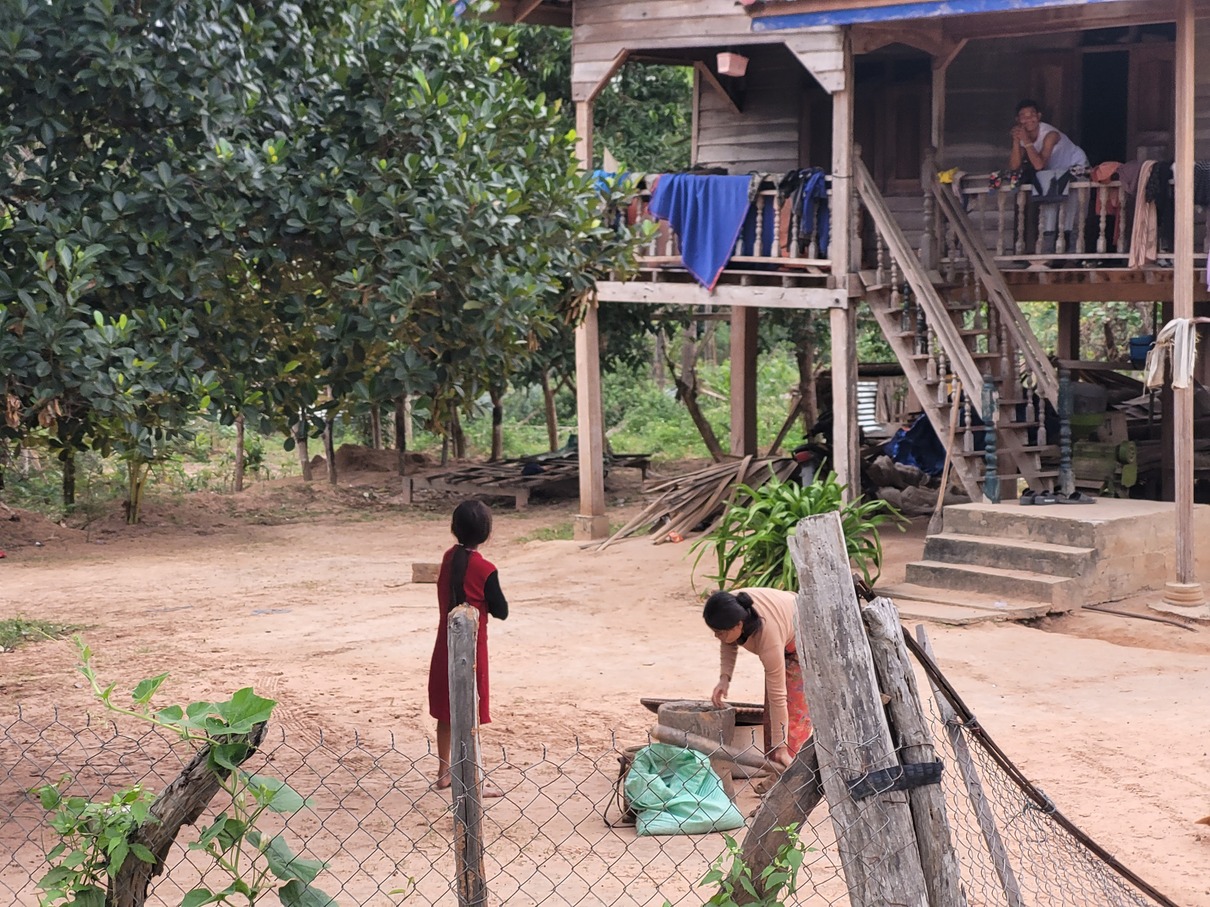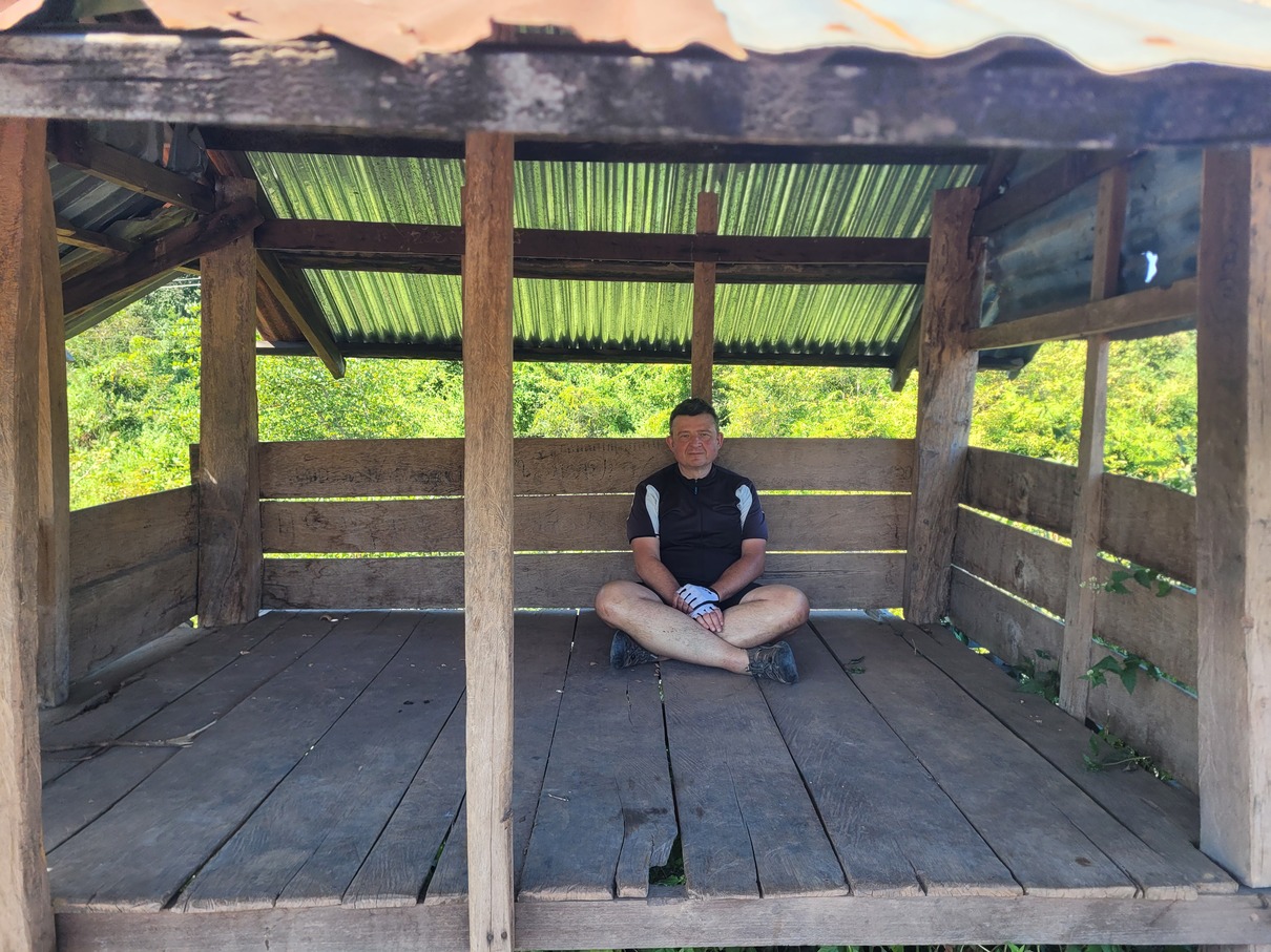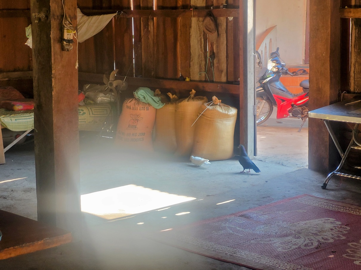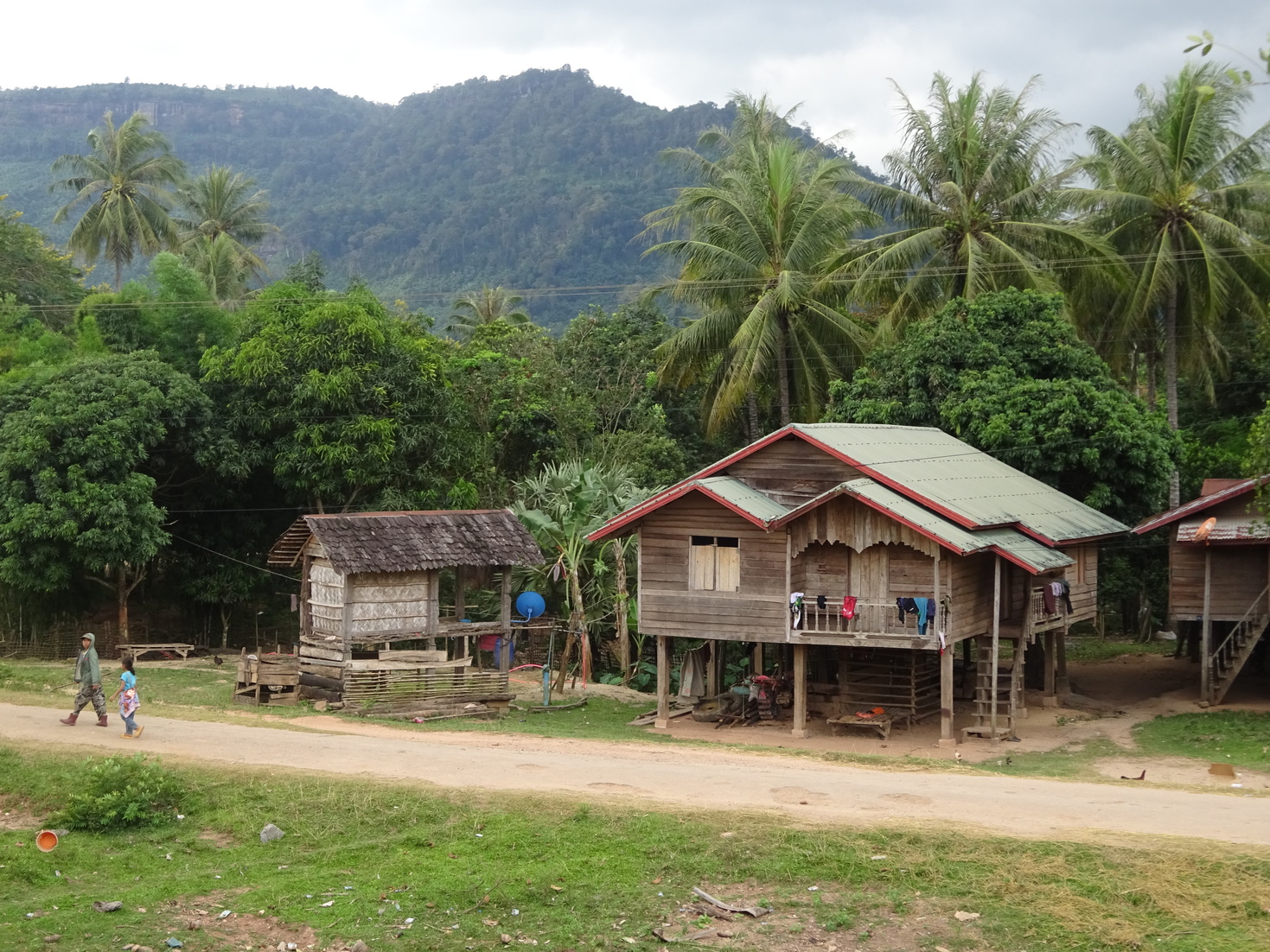 Tutaj wszystkie domy są na palach. Nawet jakieś proste schronienia/szałasy przy polach też są wyniesione. Nawet coś, co wygląda jak przystanek. Longin mówi że to dla ochrony przed wężami – czyli gdyby przyszło rozstawiać namiot, to trzeba by szukać właśnie takiego miejsca.