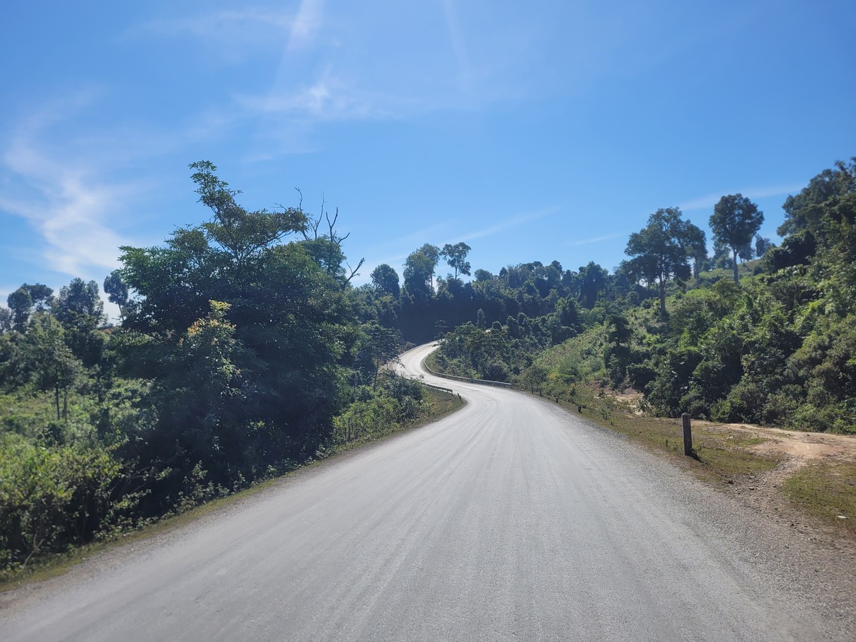 Po drugiej stronie Mekongu droga bardzo porządna. Czyli w zasadzie nudna… W zasadzie, bo problemy żołądkowe Ewy eskalują – temperatura 37.8° i niemoc.
