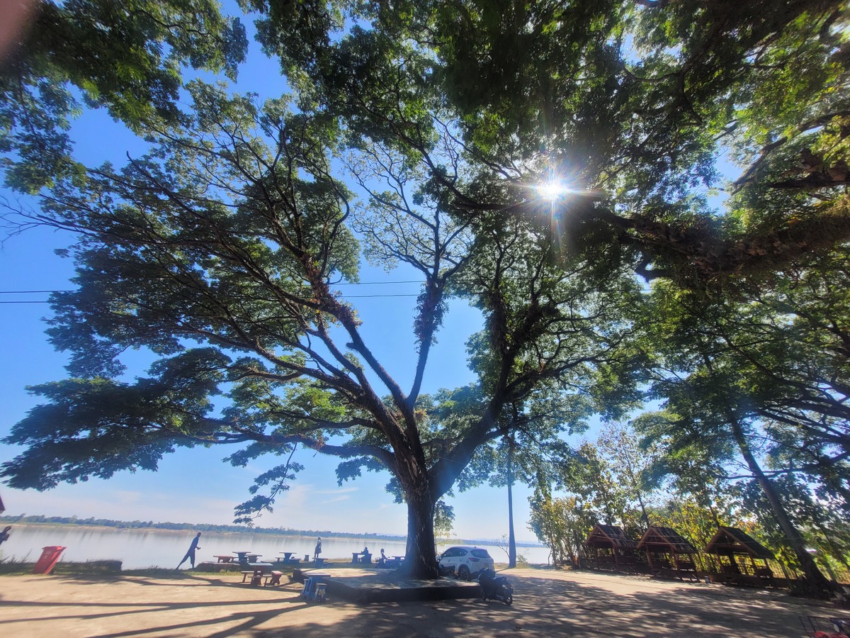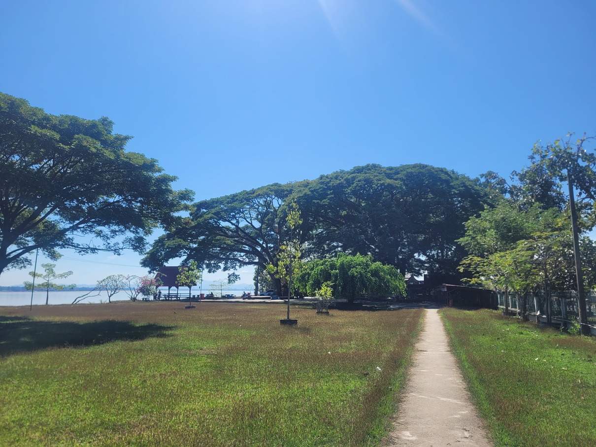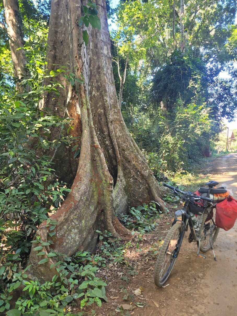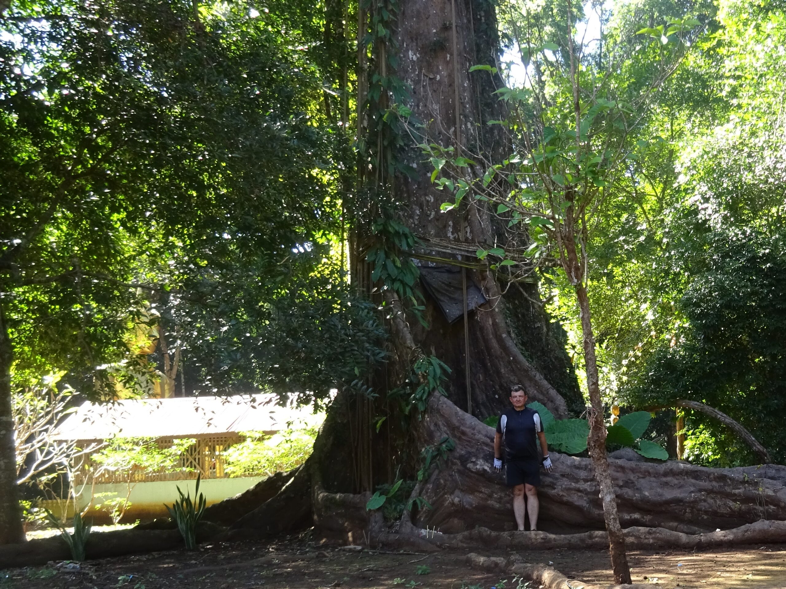 Niby jedziemy wzdłuż Mekongu, ale nie bardzo go widać z drogi. Za to zobaczymy go w całej okazałości, gdy zjedziemy w bok, skuszeni widokiem niesamowitego, ogromnego drzewa obok drogi: