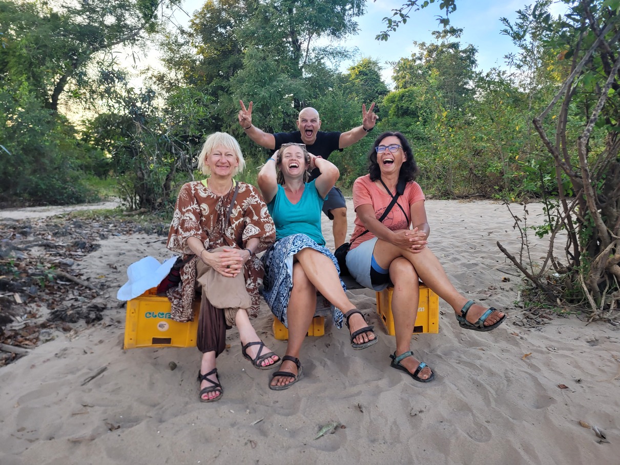 Faktycznie dojeżdżamy na miejsce, gdzie białasów jest więcej niż miejscowych. Chwila poszukiwań i znajdujemy ciekawy hostel ze ścianami z trzciny, łożami z moskiterami (nie rozkładaliśmy – akurat żadnych komarów tam nie było), sympatyczną gospodynią i dużą jadalnią z lodówką z zimnym piwem.