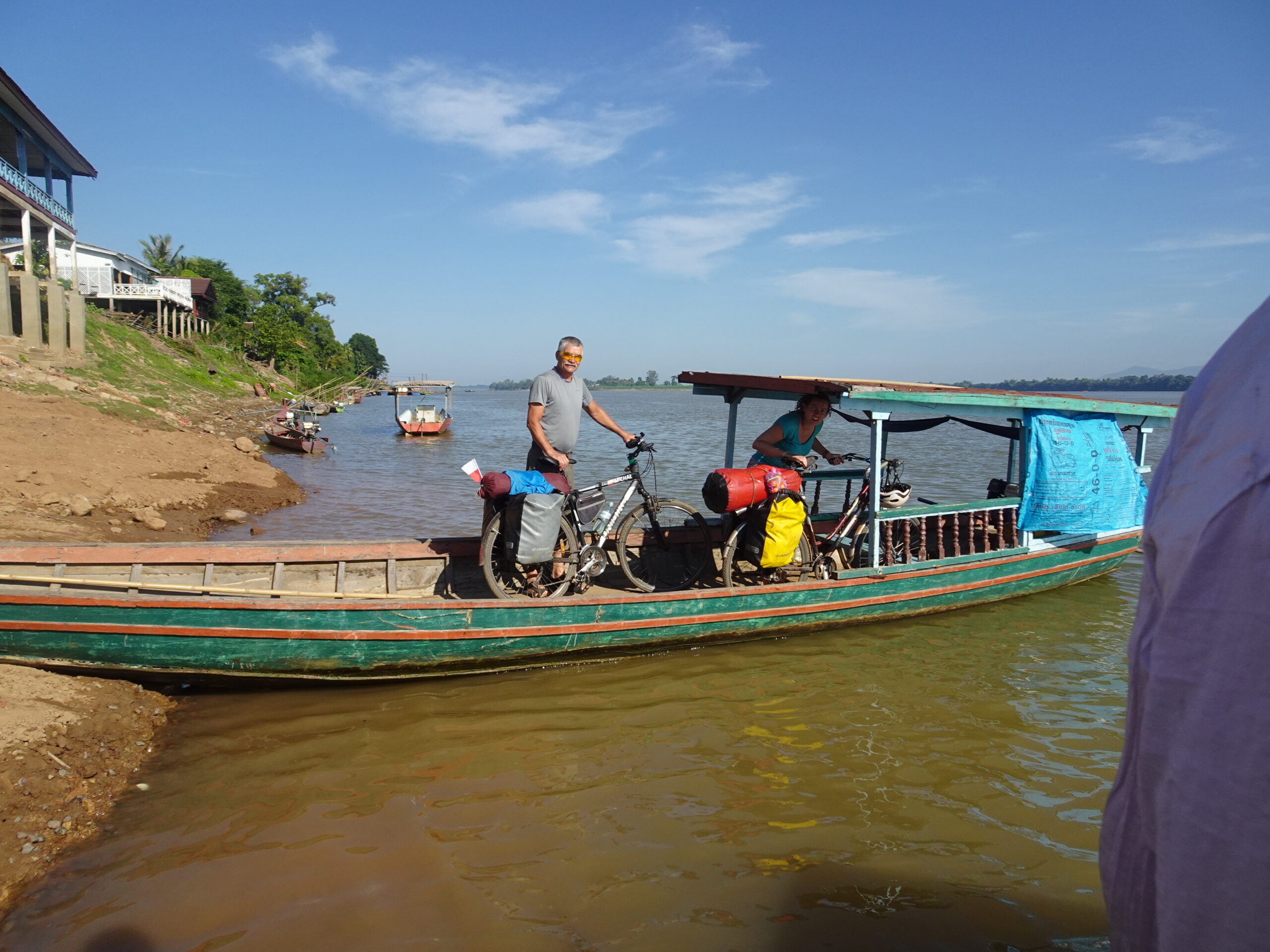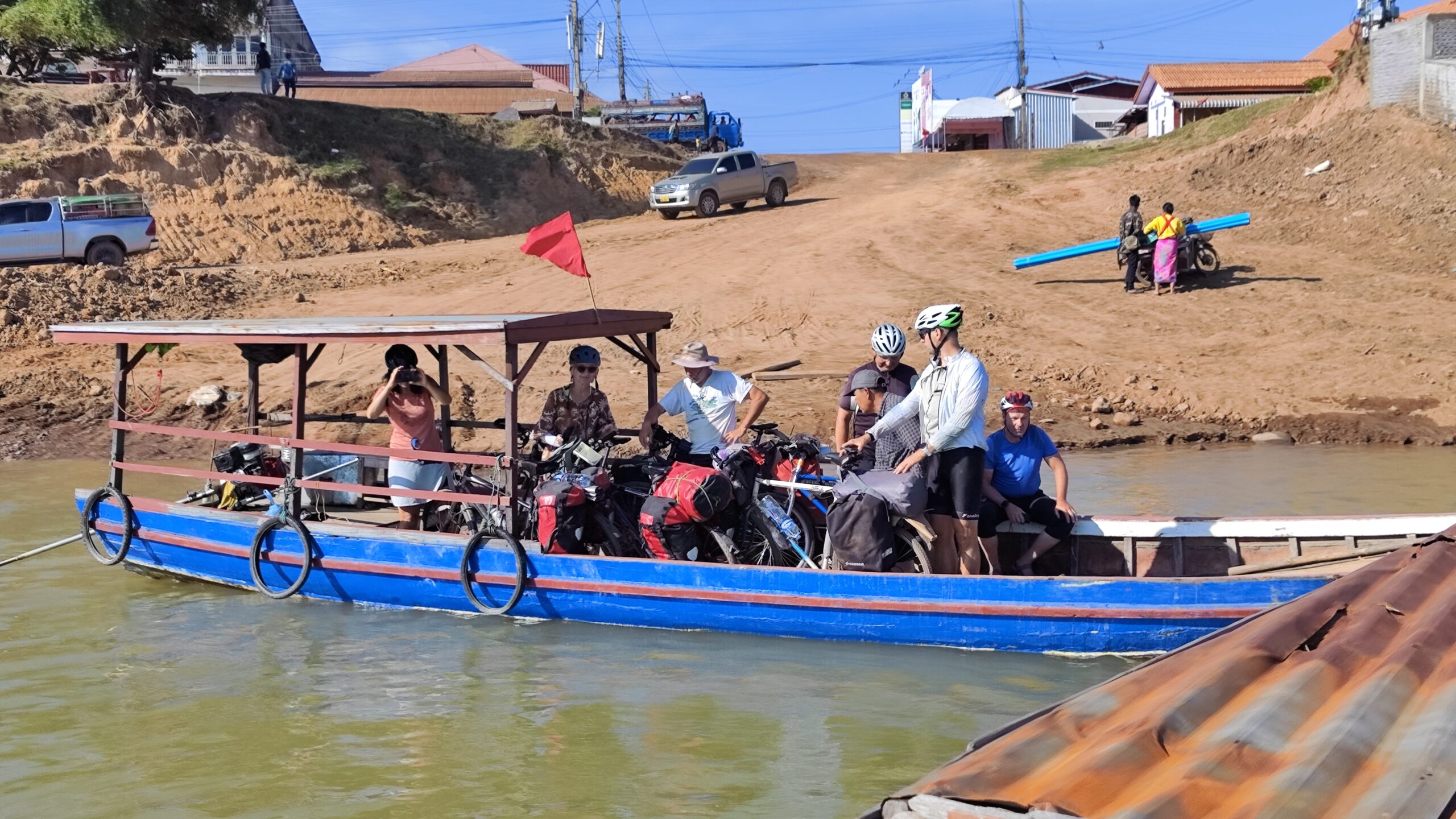 Zdzwaniamy się z Adamem: mówi, że on już po przeprawie (jak się potem okazało, on nie płynął tym promem – dojechał aż do ujścia dopływu do Mekongu, gdzie zabrała go jakaś łódka). Będziemy się łapać dalej.
